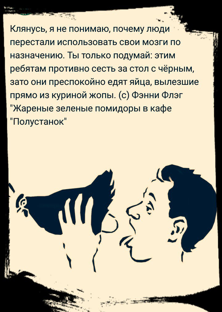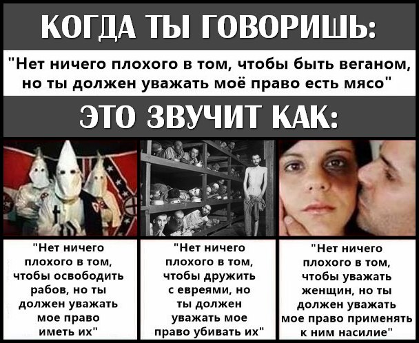 Тут дело куда глобальнее обстоит на самом деле. Из-за эгоизма - как желание угодить своему чреву в потреблении мяса, страдает природа - плодородные земли после того, как там образовывают пастбище больше не может быть использовано под выращивание, ибо больше там ничего вырастить не может, леса вырубаются - чтобы разбить там ферму и пастбище, кислорода становится меньше, а метана больше(привет глобальное потепление), не говоря уже о пресноводных источниках воды, которые также становятся негодными к использованию(скотина гадит ж). Как бы там рогом, кто не упирался, а мне всё же кажется, что за вегет-вом, веганством, сыроединием - будущее. Если кто читал Зеланда и его трасерфинг, может знают, что есть ещё и апокрафический трасерфинг - просто ради интереса почитайте, рассматривается образ жизни, питание и всё, что формирует наше здоровье, как внутреннее, так и внешнее. Там не призывают, не пропангандируют ничего, дается понимание и знание с которым увы уж не поспорить