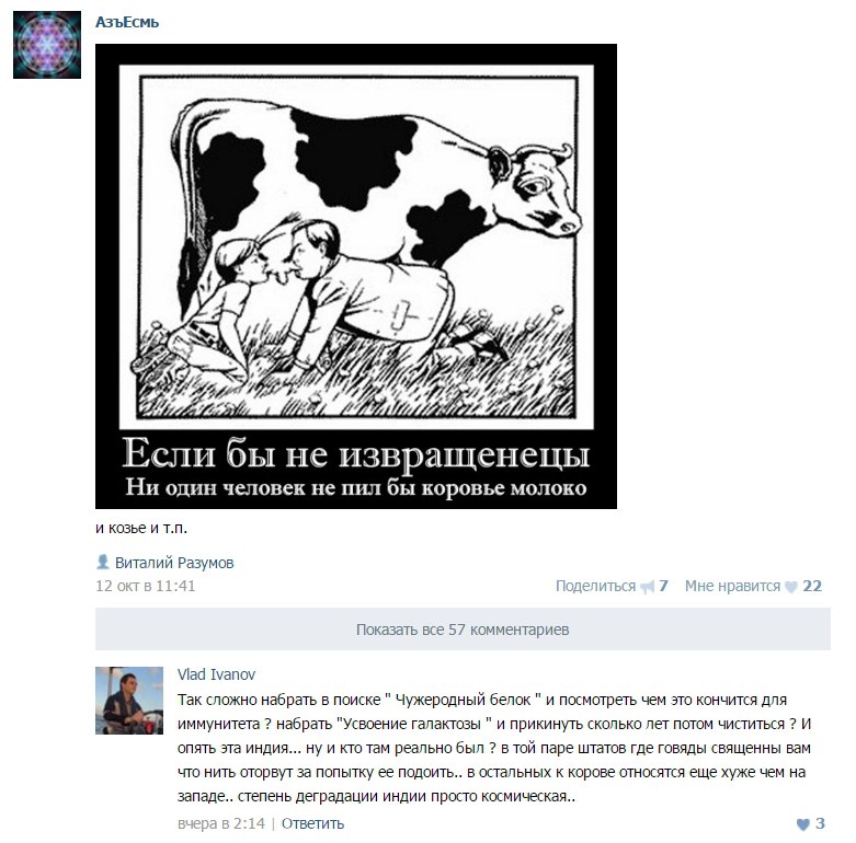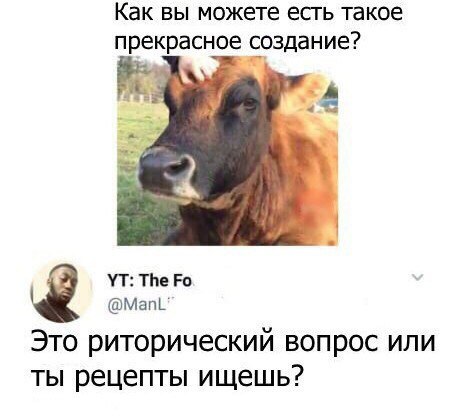 Так подождите, тогда выходит, что количество скота надо сокращать, это тоже не очень гуманно. А если абсолютно все перестанут употреблять животные продукты, то, к примеру, коровы просто вымрут, потому что кто будет их содержать и разводить просто так, не используя даже их молоко? А в дикой природе они просто вымрут, окончательно и бесповоротно. Вопрос тут очень многогранный, в любом случае