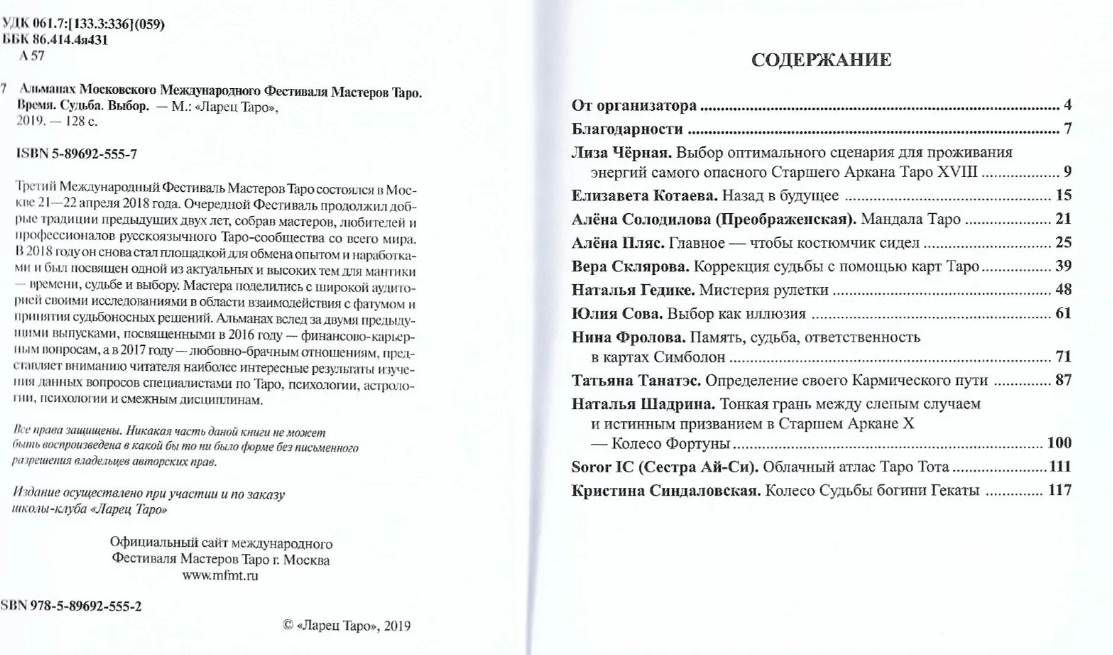 Альманах Московского Международного Фестиваля Мастеров Таро "Время Судьба Выбор"