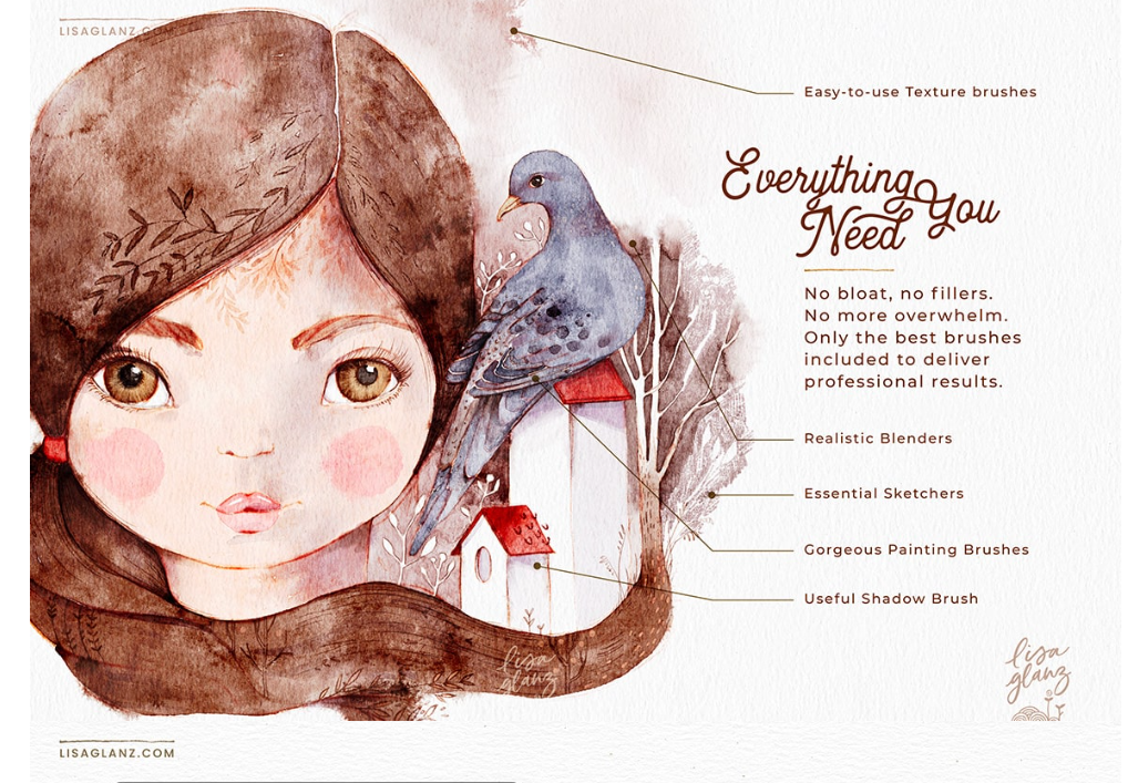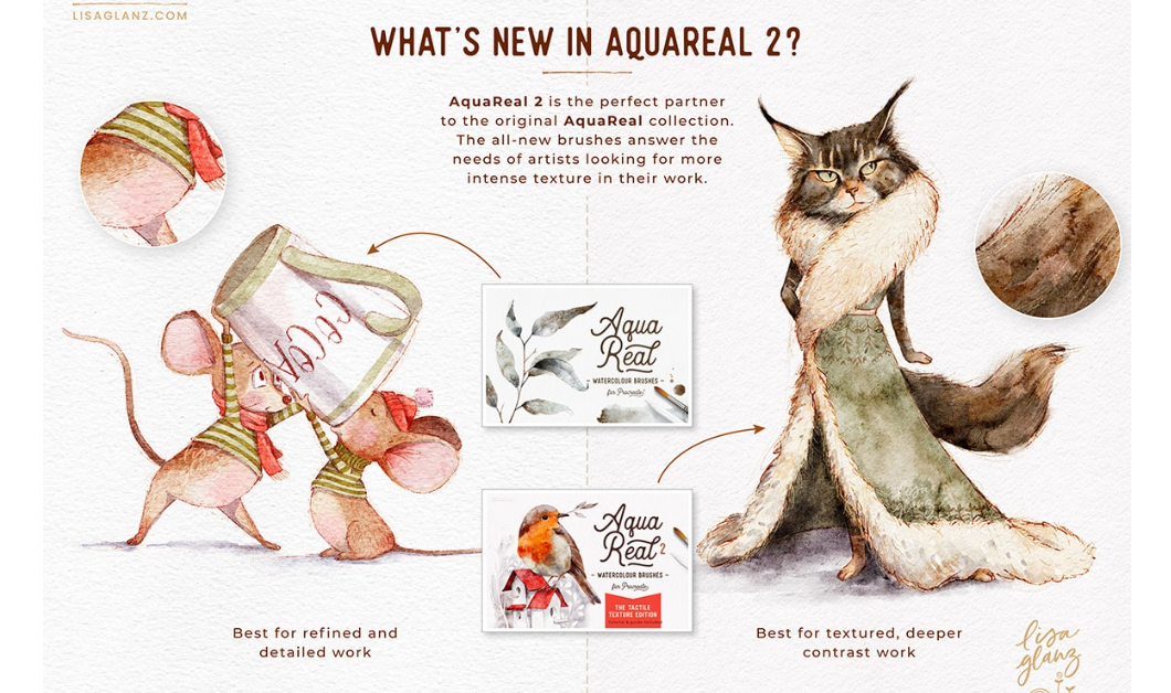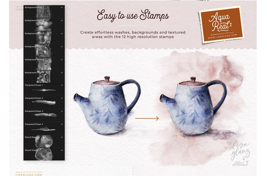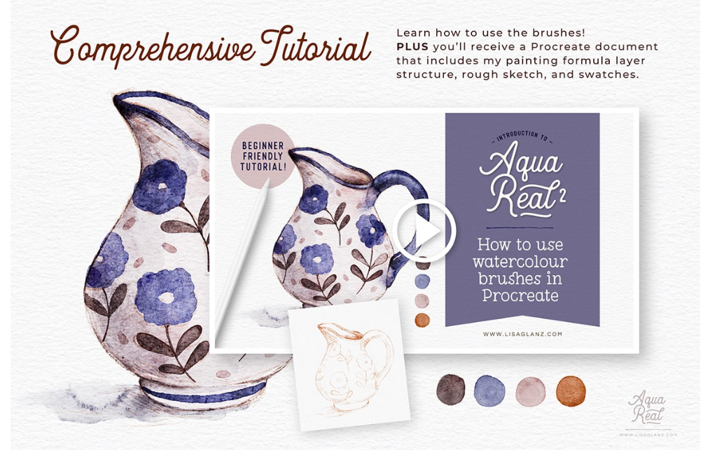 AquaReal 2 — Акварельные кисти с тактильной текстурой для Procreate [Lisa Glanz]