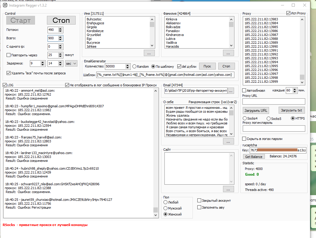 Автореггер аккаунтов Instagram v 1.3.2 web на фейк почты
