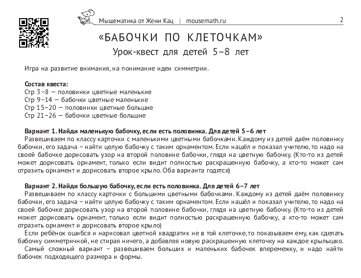 Бабочки по клеточкам. Обучающий квест (PDF) [Мышематика] [Женя Кац]