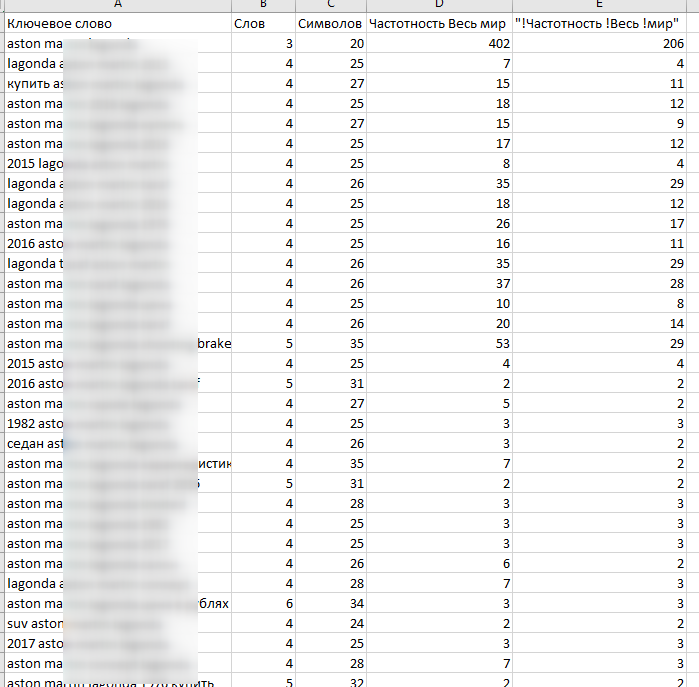 База ключей категории Авто более 500к