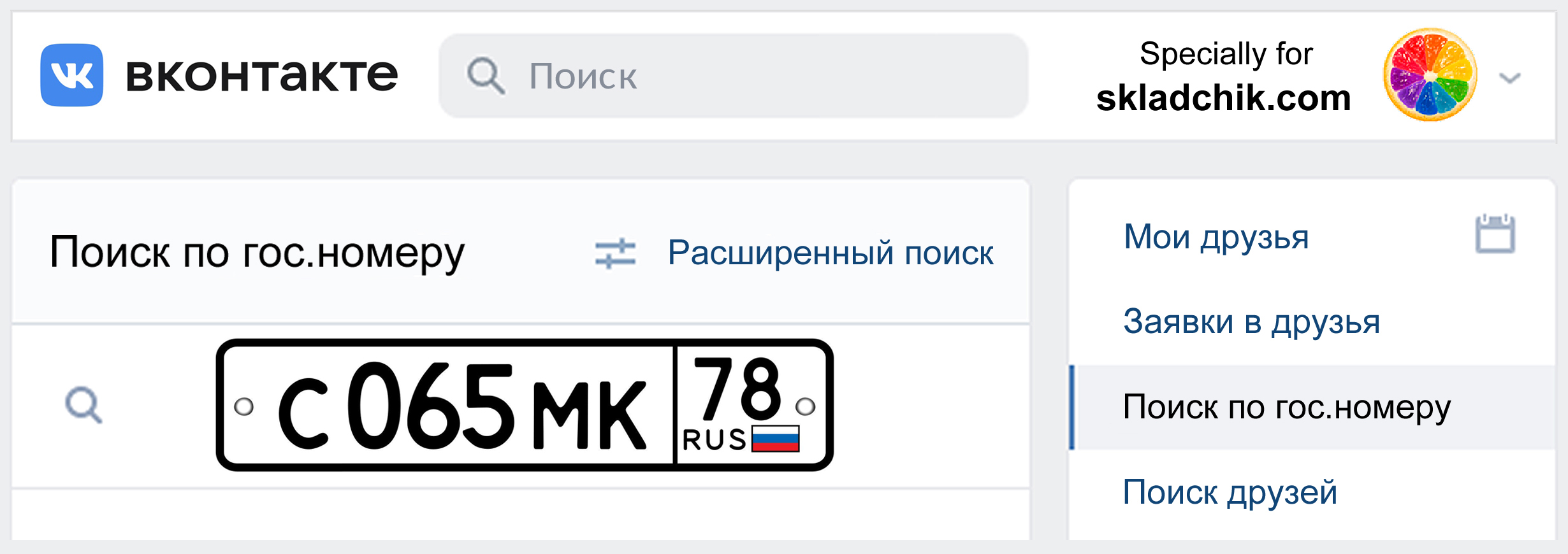 Бесплатно находим владельца в соц.сети "ВКонтакте" по гос.номеру автомобиля