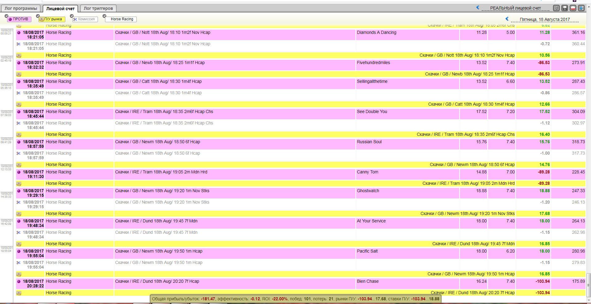 Betfair, скачки, прибыльный триггер для MarketFeeder Pro