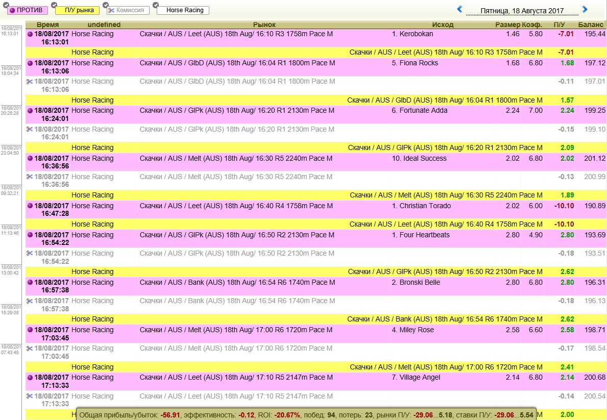 Betfair, скачки, прибыльный триггер для MarketFeeder Pro