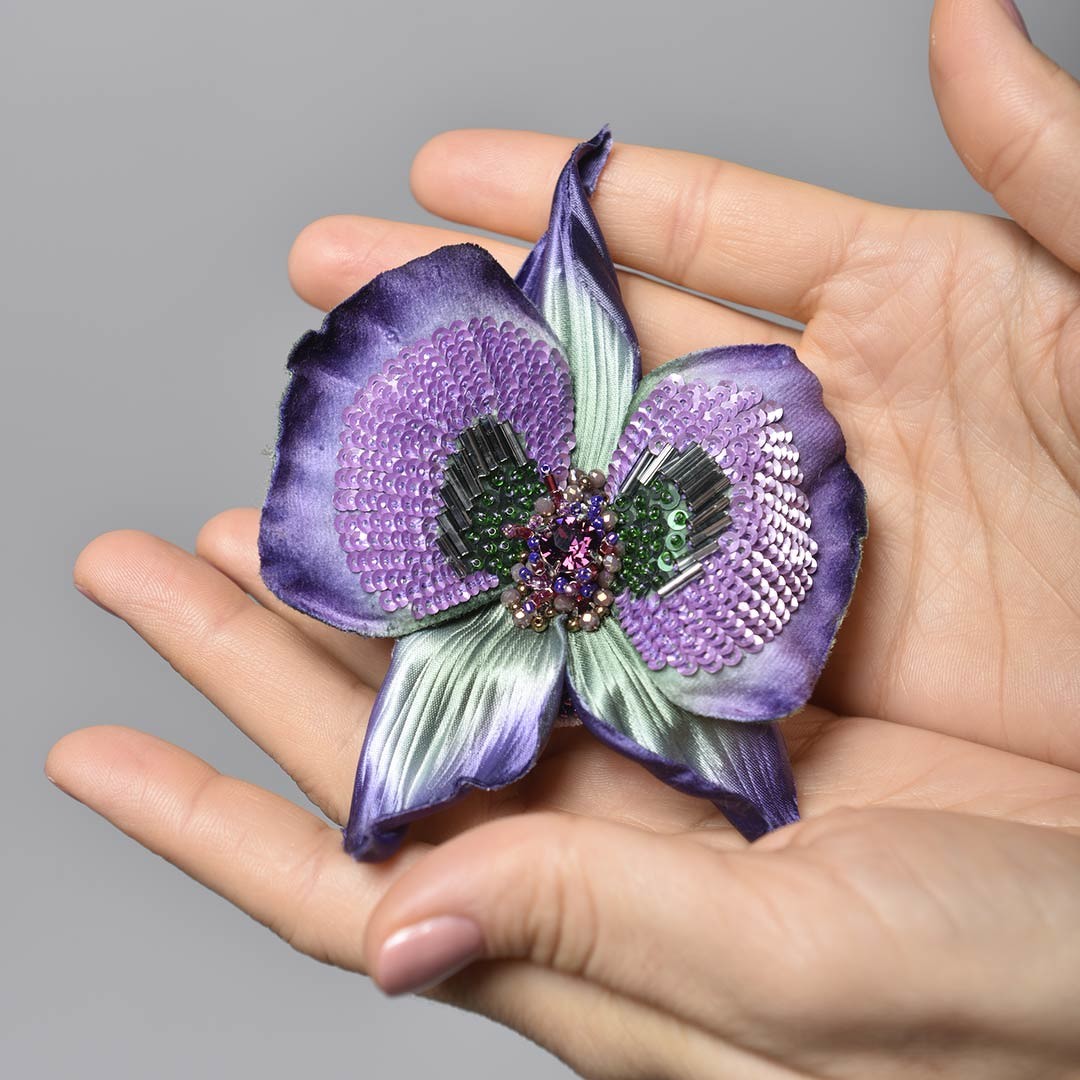 Брошь — орхидея «Леди Гамильтон» [Полина Кузнецова] [SilkFlora]