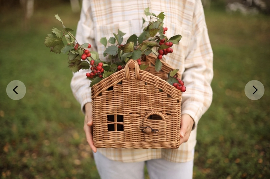 [Бумажная лоза] Корзина-домик с имитацией крыши [Ольга Филимонова]