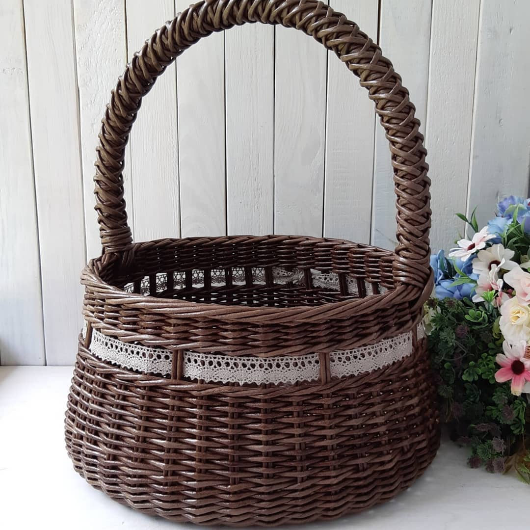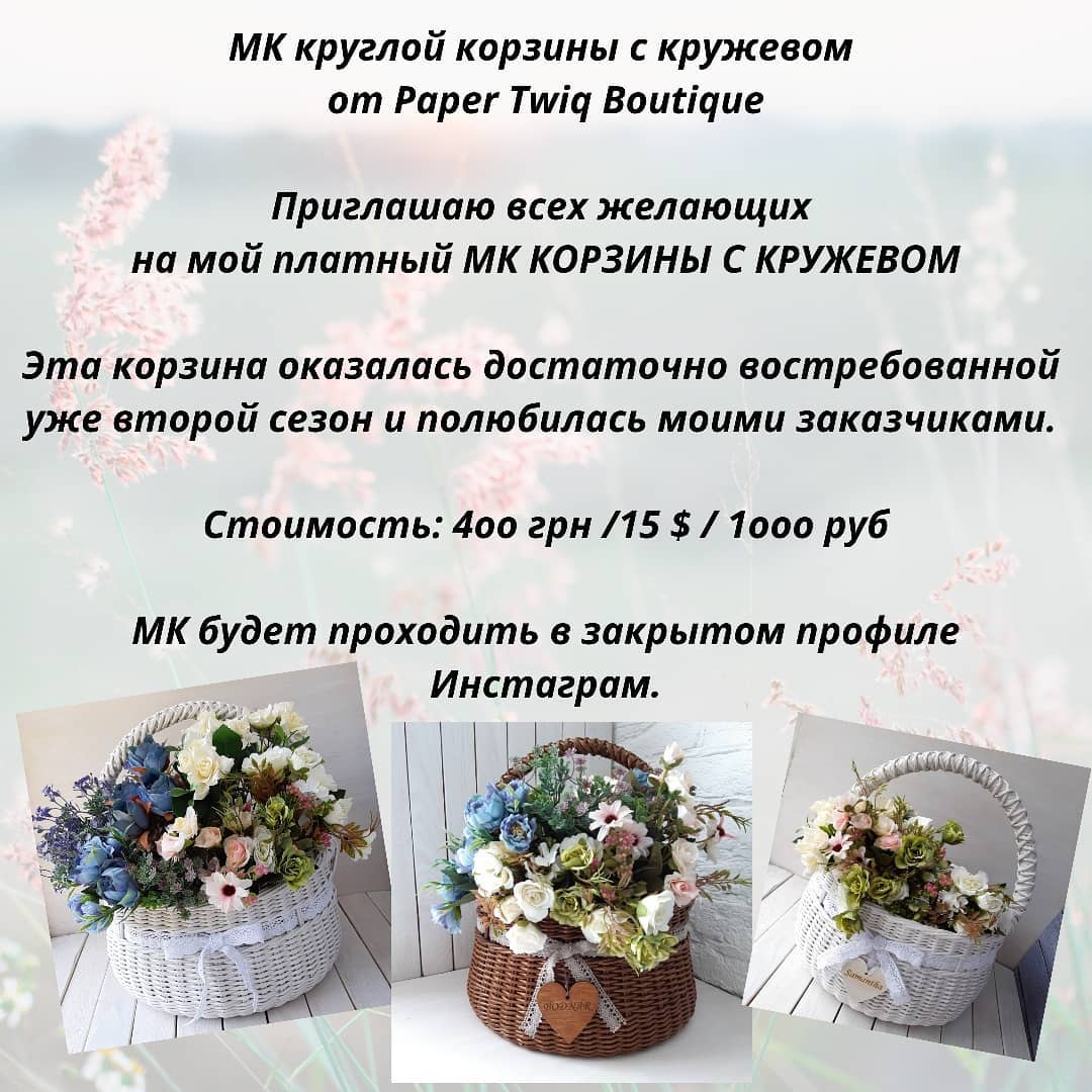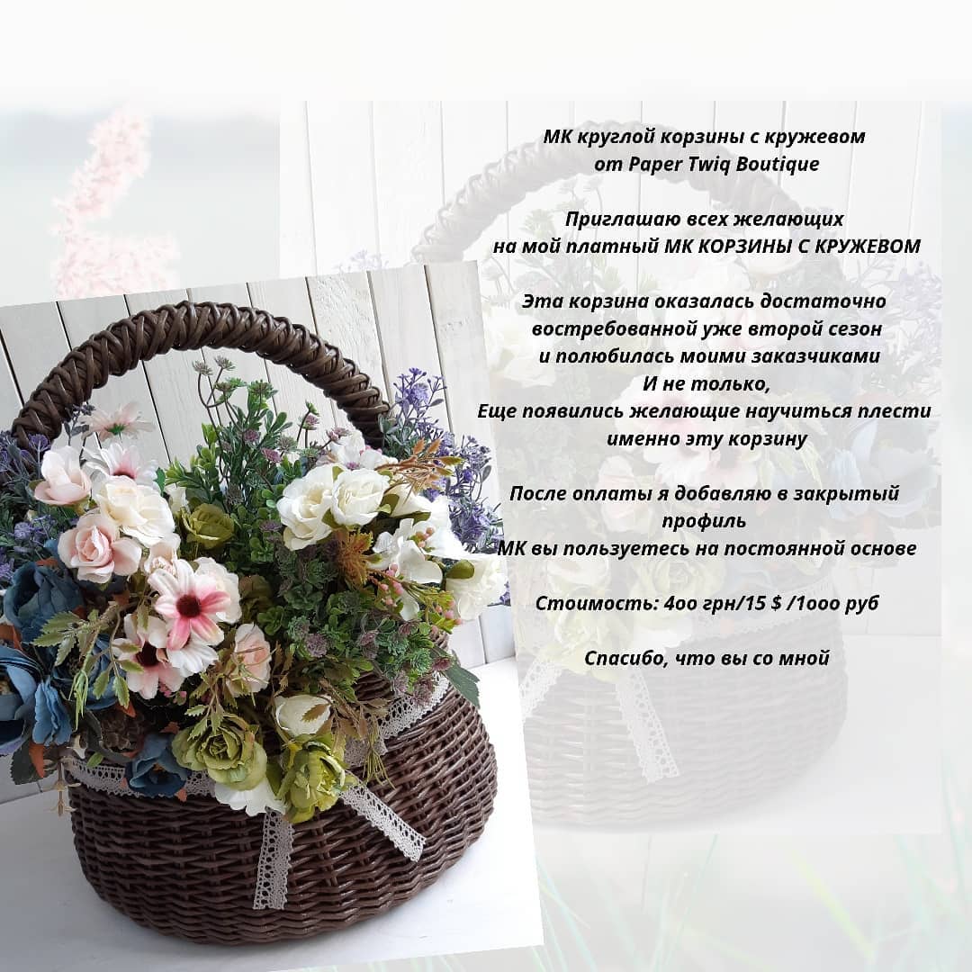 [Бумажная лоза] МК по плетению круглой корзины с кружевом [paper_twig_boutique]
