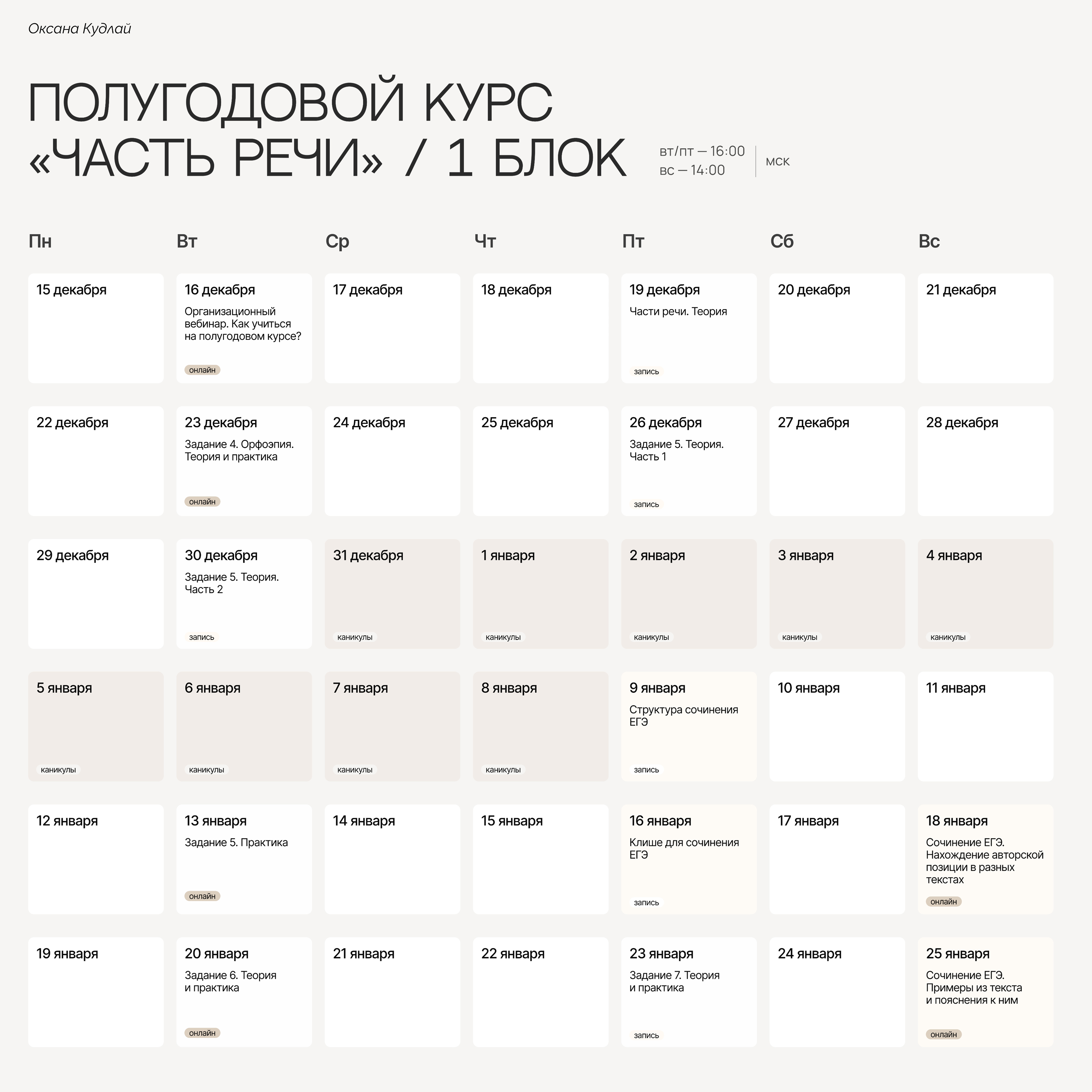 Часть речи. ЕГЭ по русскому языку (блок 1: декабрь - январь 2026) [Тариф Без куратора] [Оксана Кудлай]