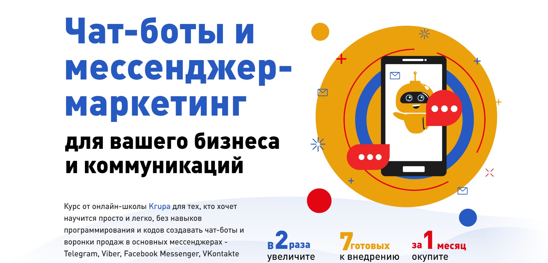 Чат-боты и мессенджер-маркетинг для вашего бизнеса и коммуникаций [Krupa school] [Юлия Зацаринна]