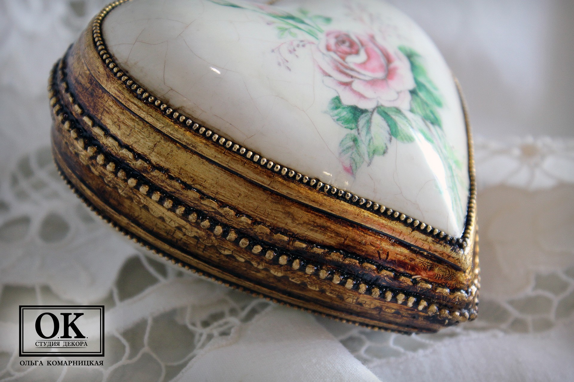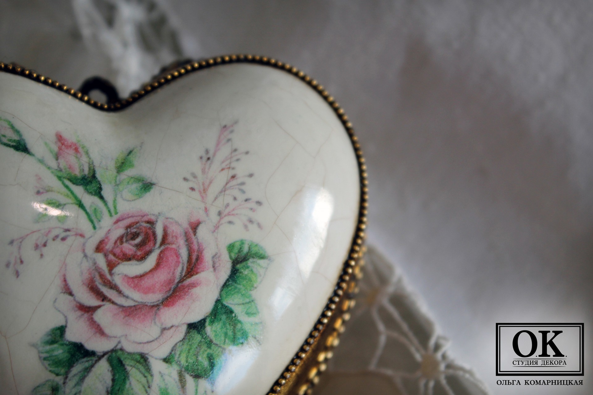 [Декор] Елочное украшение "Сердечко с розой" + Елочное украшение "Очень старый шар" [Ольга Комарницкая]