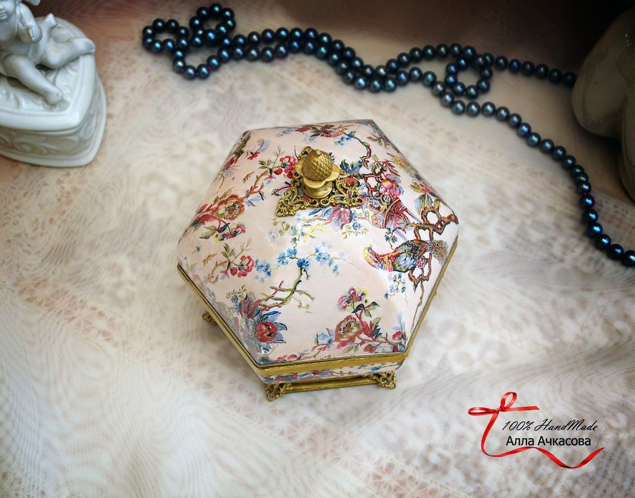 [Декор] Поднос «Японский пэчворк» + Яйцо декоративное «Ангел» + Шкатулка в стиле «Шануазри» [Алла Ачкасова]