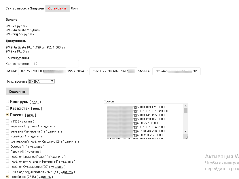 Смс сервисы с которыми работает: smska.net sms-activate.ru