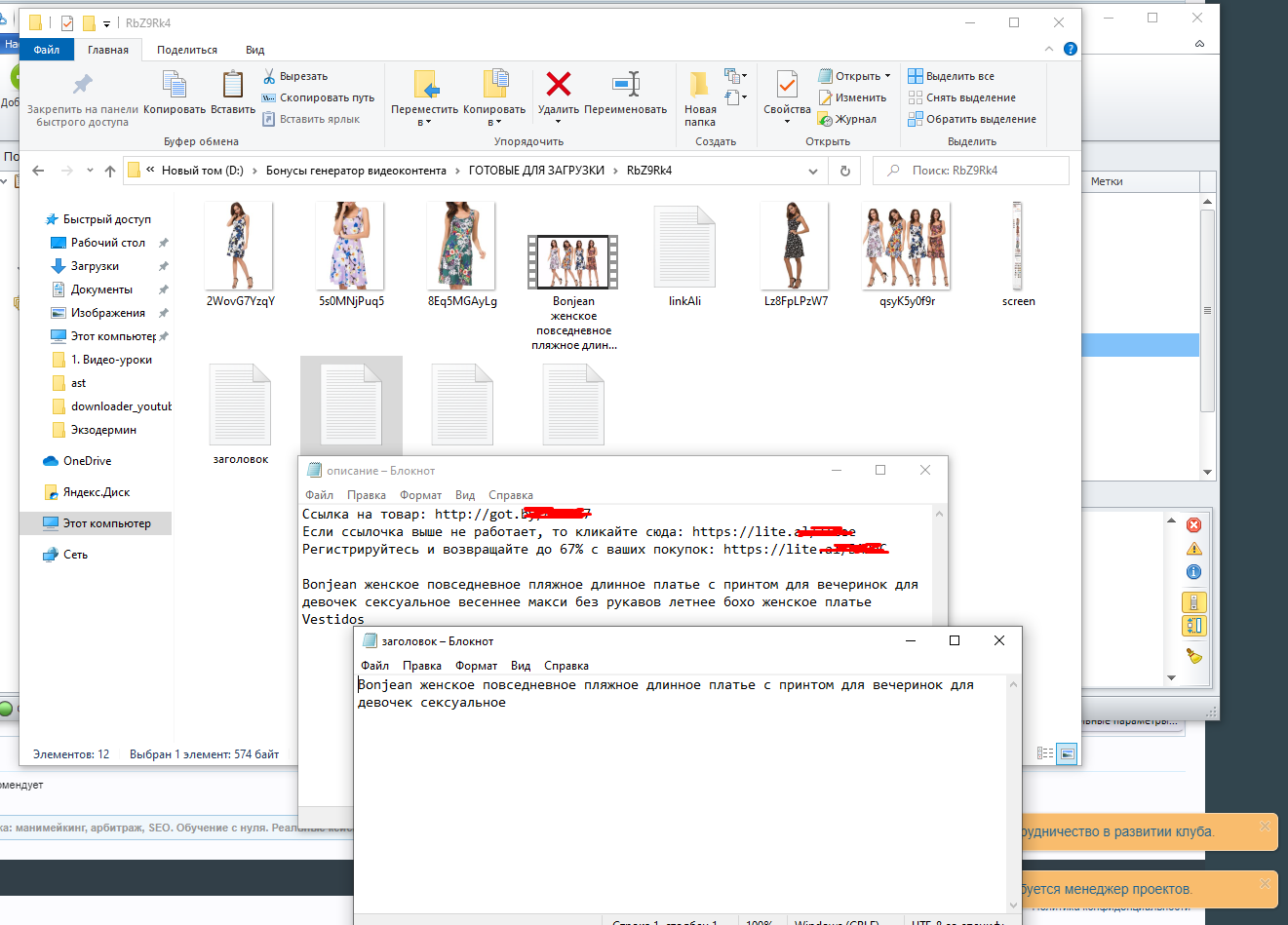 А спарсить эти данные (картинки,тайтлы,описание и теги),сгенерить видео и положить в отдельную папку,а также из того же xml файла (где и фото,тайтлы,описание,теги),подставить реф ссылку,ааа,? ;);)