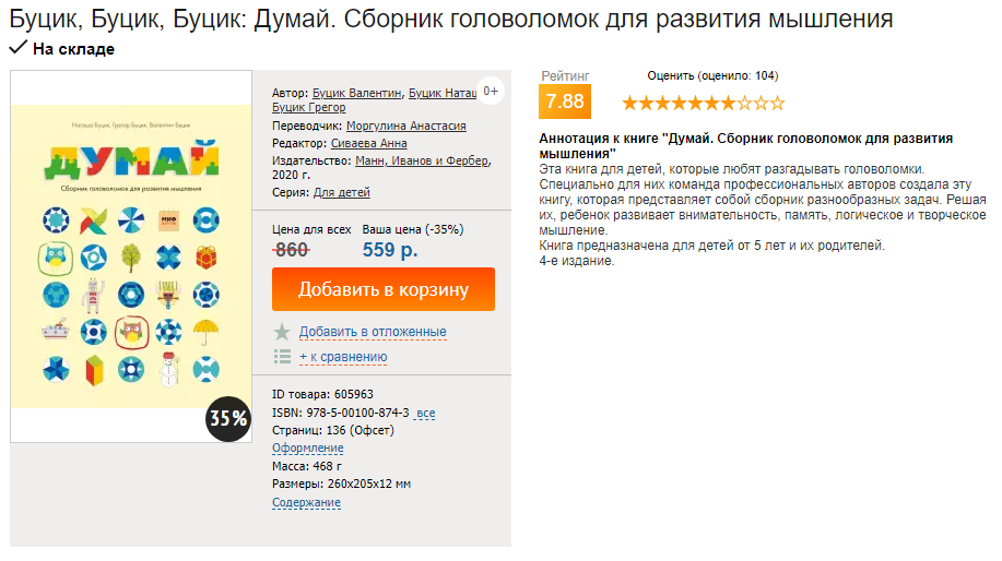 Думай и Думай 2. Сборник головоломок для развития мышления [Буцик, МИФ] [Повтор]