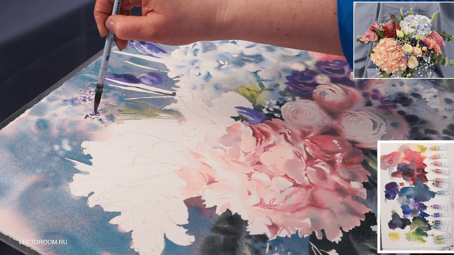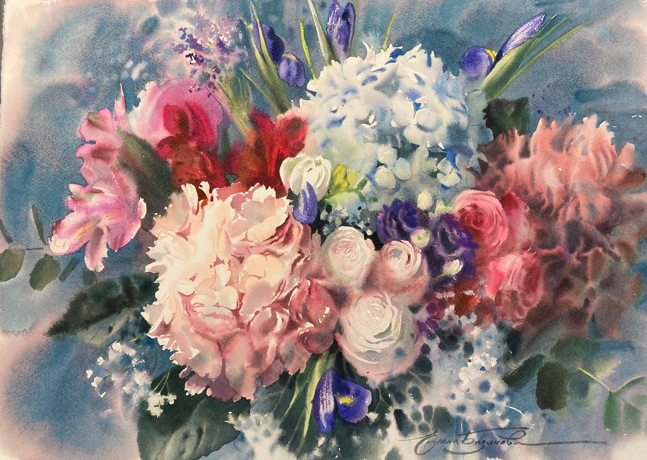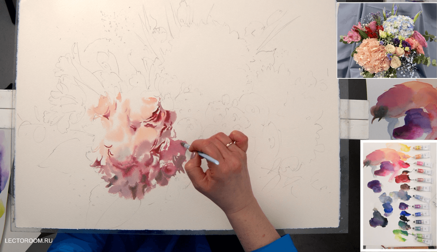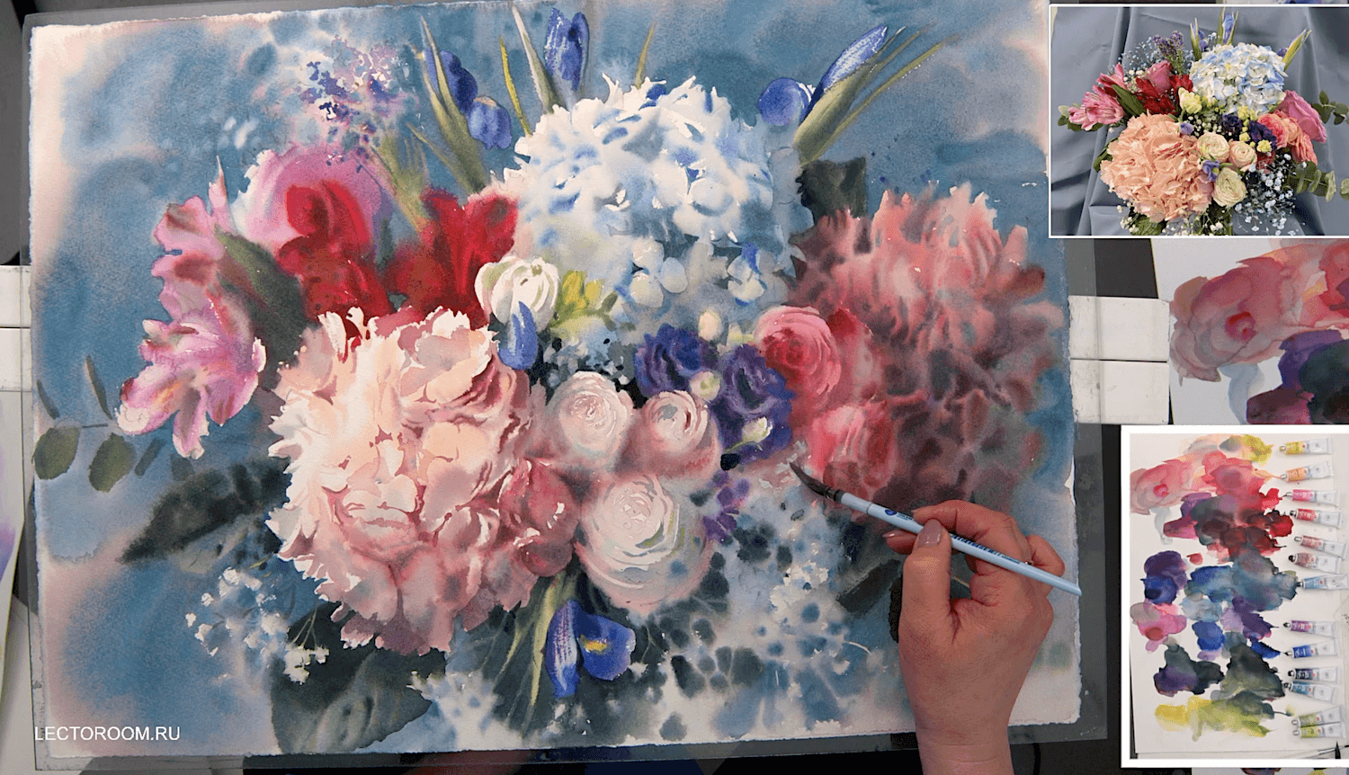 Этюд с гортензией акварелью [lectoroom] [Елена Базанова]
