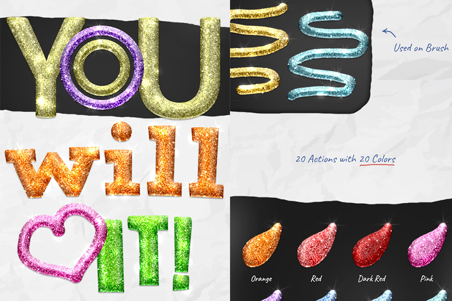 Gliter- экшены и стили для текста