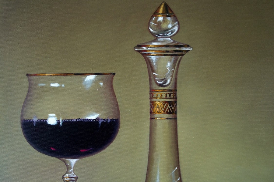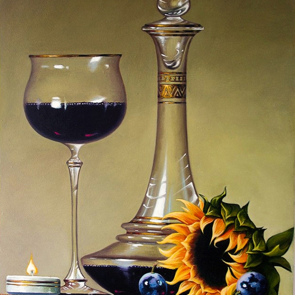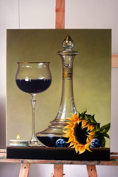 Графин с вином и подсолнух. [Онлайн университет живописи]