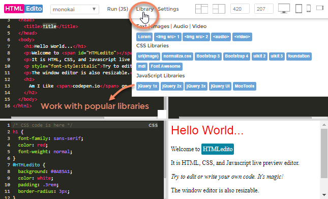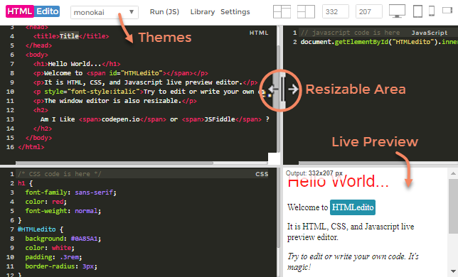 [HTML5] HTMLEdito - HTML, CSS, JavaScript Live Editor
