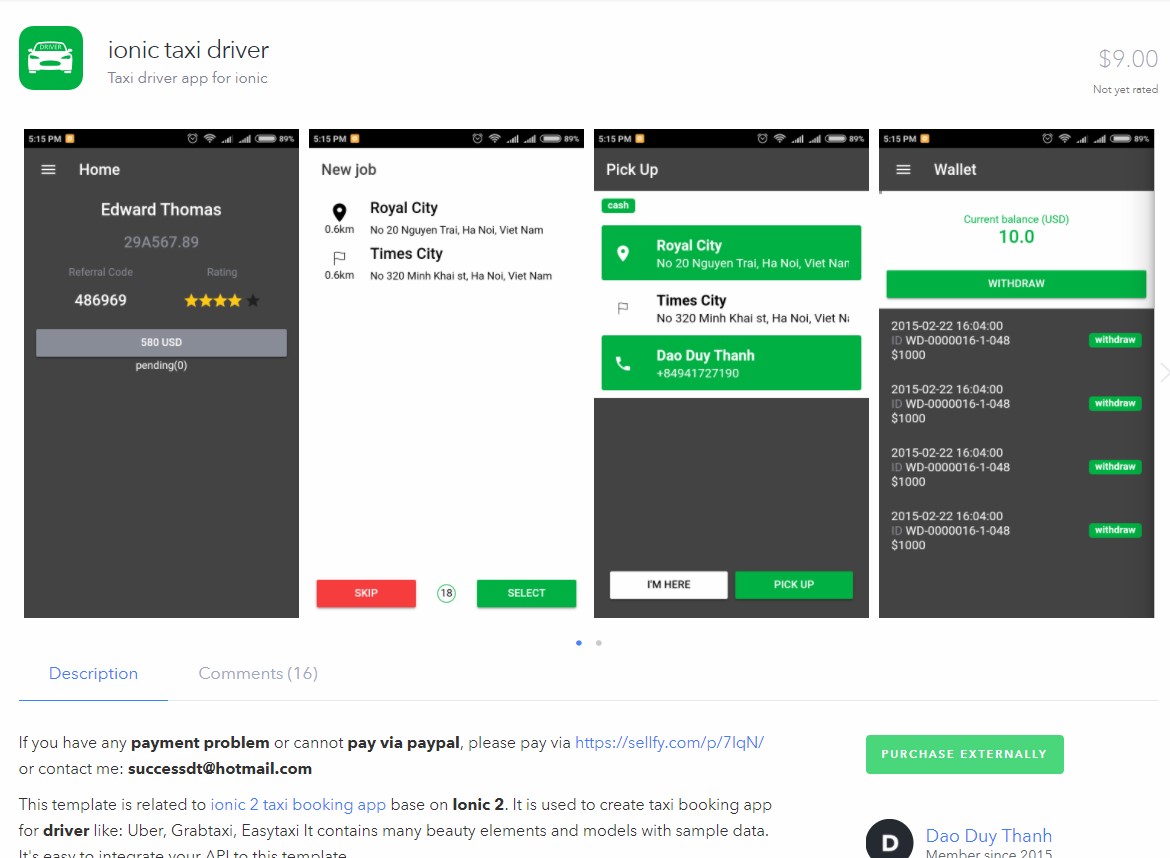 Ionic taxi driver
