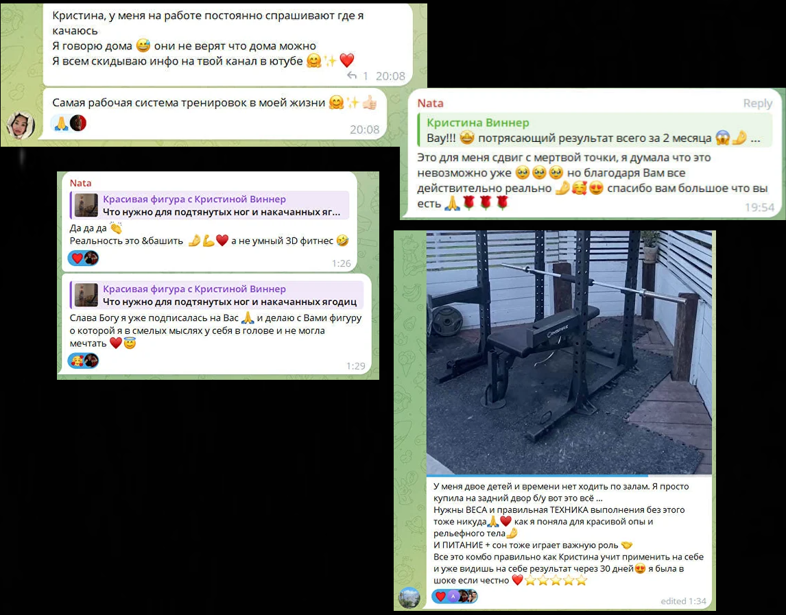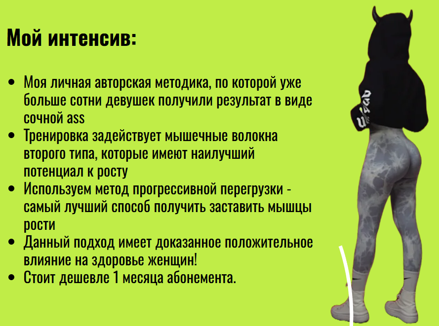 Складчина: Juicy Ж [TinnaWin] [Кристина Виннер] 3 готовых программы тренировок для новичков на 12–16 недель. Для дома и зала Тренировки на 15-20 мин. - успеет каждая Разбор анатомии твоей формы ягодиц — точно будешь знать что нужно качать, чтобы не испортить, а преобразить форму Автор интенсива: Кристина Виннер — эксперт по построению красивой фигуры Итак, ты хочешь самостоятельно подкачать себе ягодицы. Открываешь ютубчик, смотришь блогеров. И тут у тебя встаёт выбор: Тренировки с лёгкими резинками, 3д фитнес, умный фитнес, и прочие анубисы: Жжение Боль Неэффективная техника Травмы 0 результата или минимальный и потом плато Тратишь время и силы и не получаешь то что хочешь. Мой интенсив: Моя личная авторская методика, по которой уже больше сотни девушек получили результат в виде сочной ass Тренировка задействует мышечные волокна второго типа, которые имеют наилучший потенциал к росту Используем метод прогрессивной перегрузки - самый лучший способ получить заставить мышцы рости Данный подход имеет доказанное положительное влияние на здоровье женщин! Стоит дешевле 1 месяца абонемента. Вебинар в котором разберём: Всё об анатомии и форме ягодиц, строении мышц - поймёшь какие формы ягодиц бывают и как тебе тренировать ягодицы с учетом твоей формы Как накачать попу полочкой без перекачанных ног Практика - какие упражнения делать, в каком порядке, что делать перед треней, как тренироваться в зале, как тренироваться дома Получишь тренировочные схемы для зала, дома, и при исключении нагрузок на ноги - в сумме 3 тренировочных вариации. Каждая вариация - готовая программа на целых 12-16 недель. В чём подвох? В том, что я хочу, чтобы ты получала офигенный результат за почти бесплатно. И потом уже поняла, что работать со мной в кайф и возможно пошла ко мне на ведение или рассказала подругам как ты сделала сочную задницу Ради этого я готова дать огромную скидку, потому что я знаю, что чем больше делишься - тем больше получаешь. Цена 2990 руб Скрытая ссылка