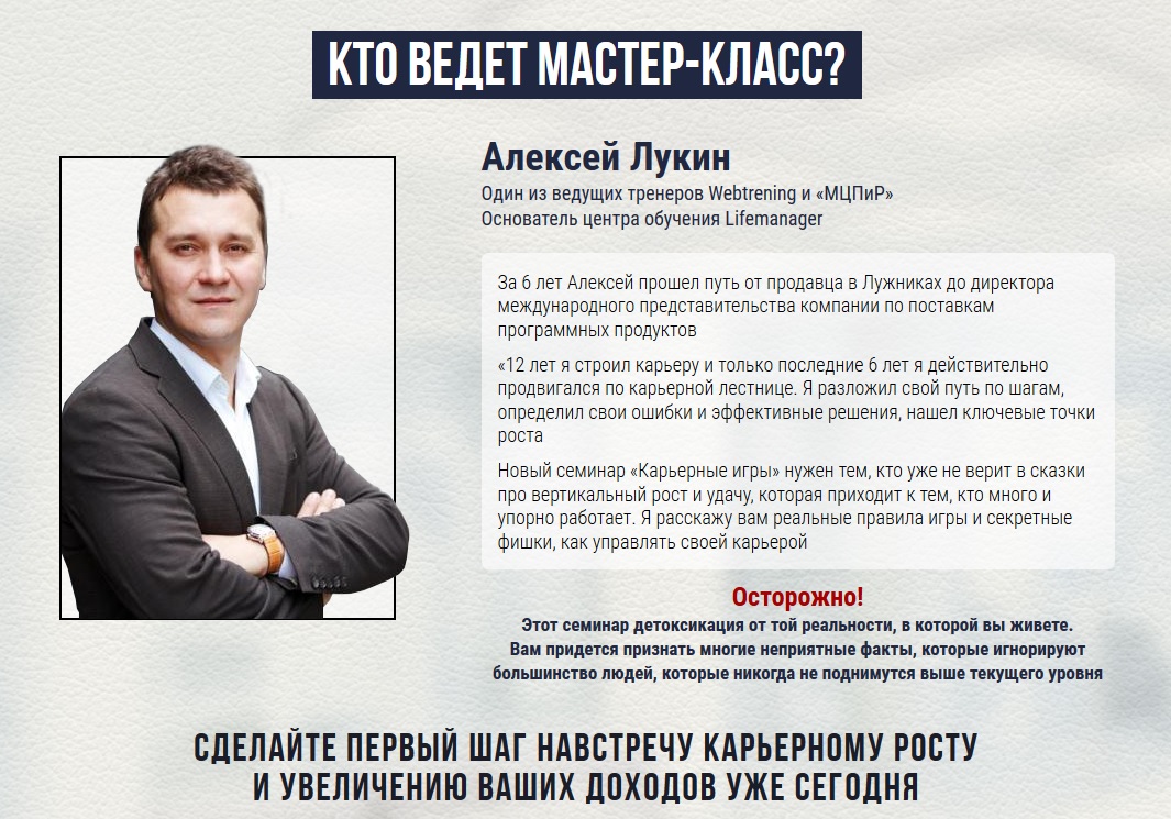 Карьерные игры. Мастер-класс Алексея Лукина.