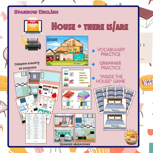 Карточки и материалы по английскому. Набор: House + there is, Question words + speaking, Recycling Set, Sweet Numbers [Sparrow English]
