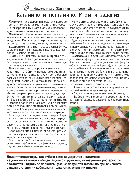 Катамино и пентамино: варианты игр и заданий (PDF) [Мышематика] [Женя Кац]