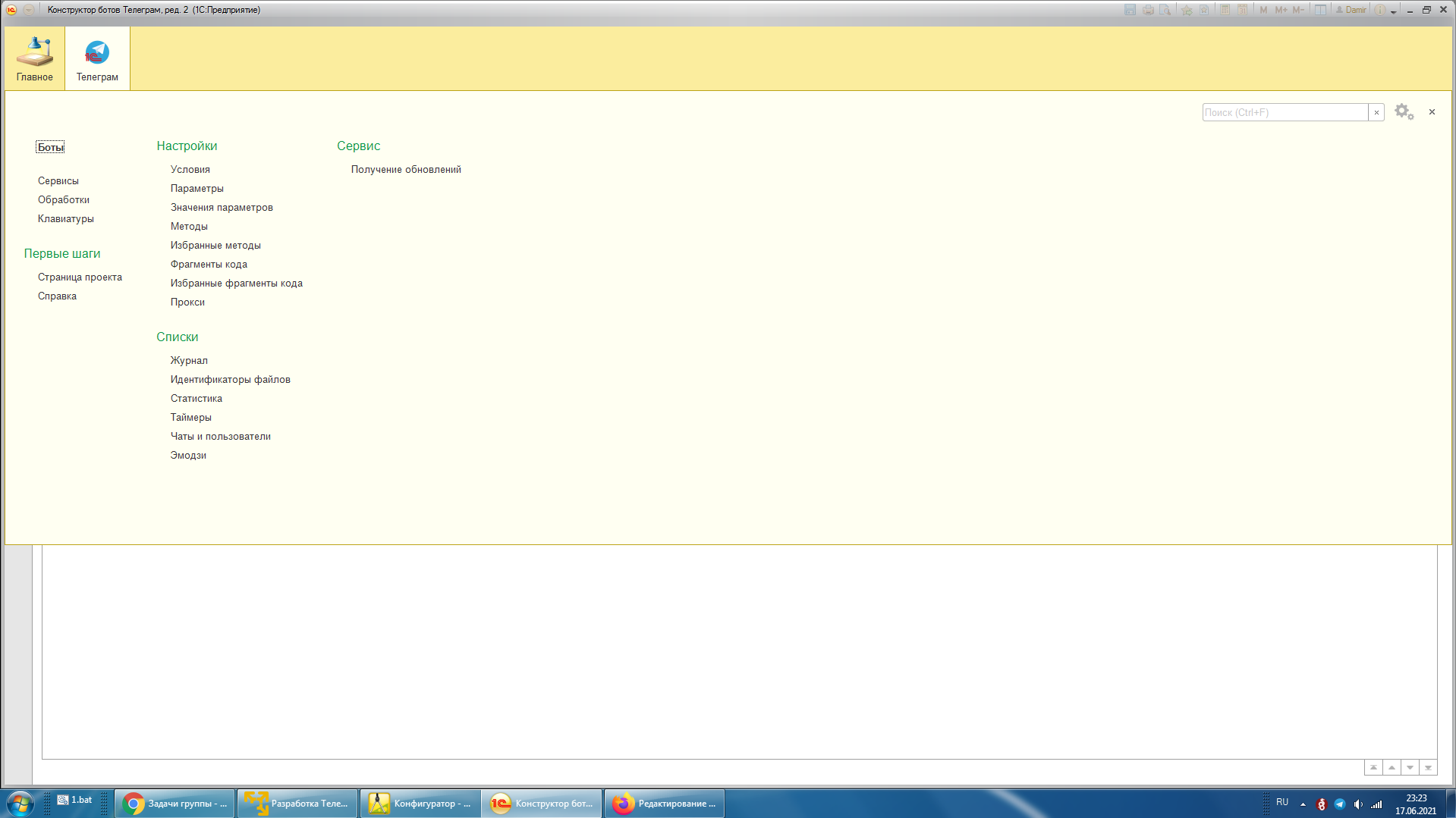 Конструктор ботов Телеграм, редакция 2 [infostart.ru]