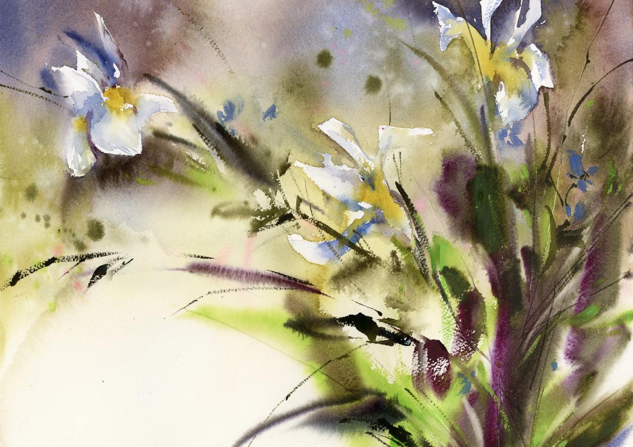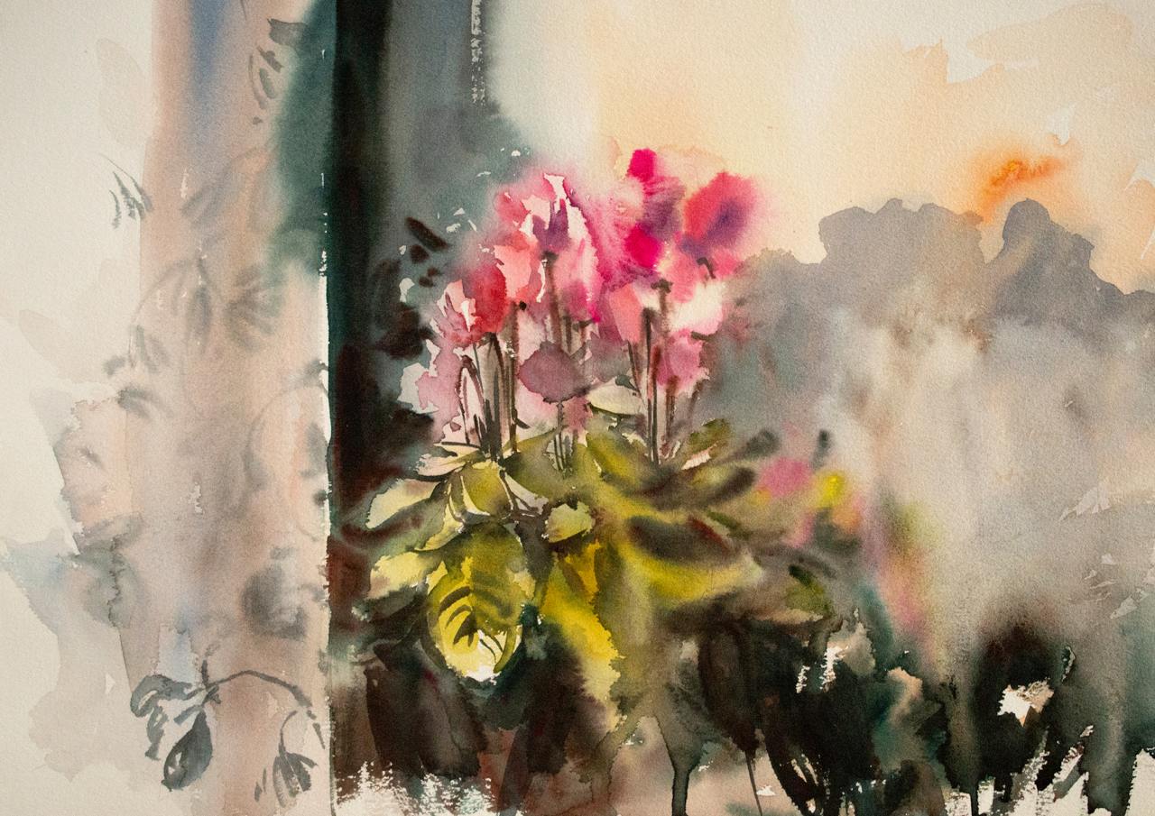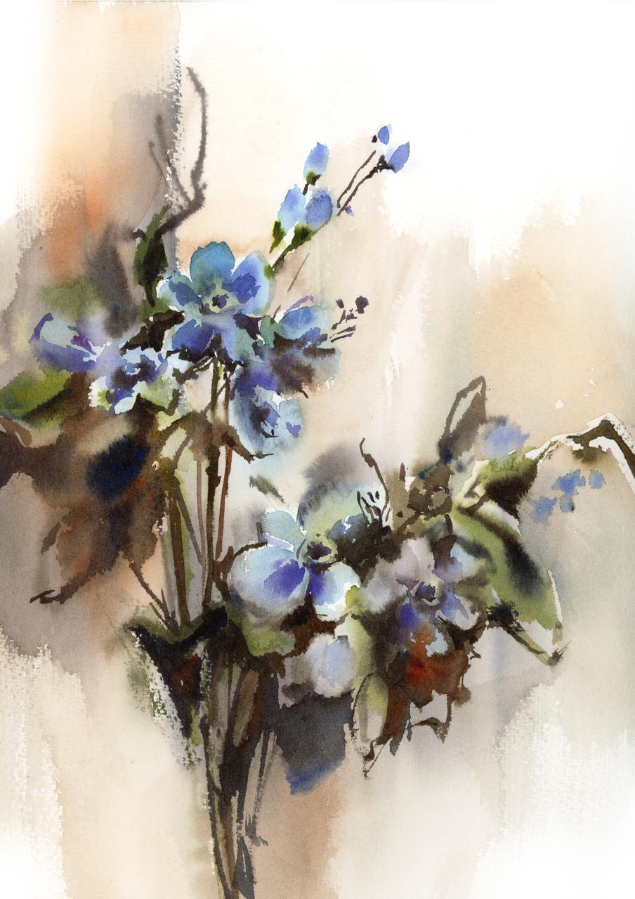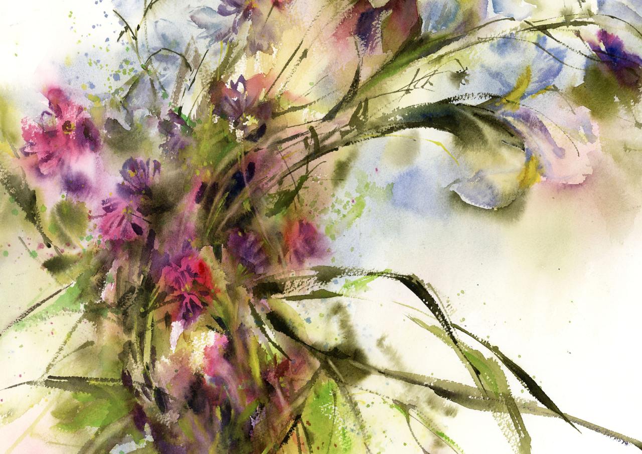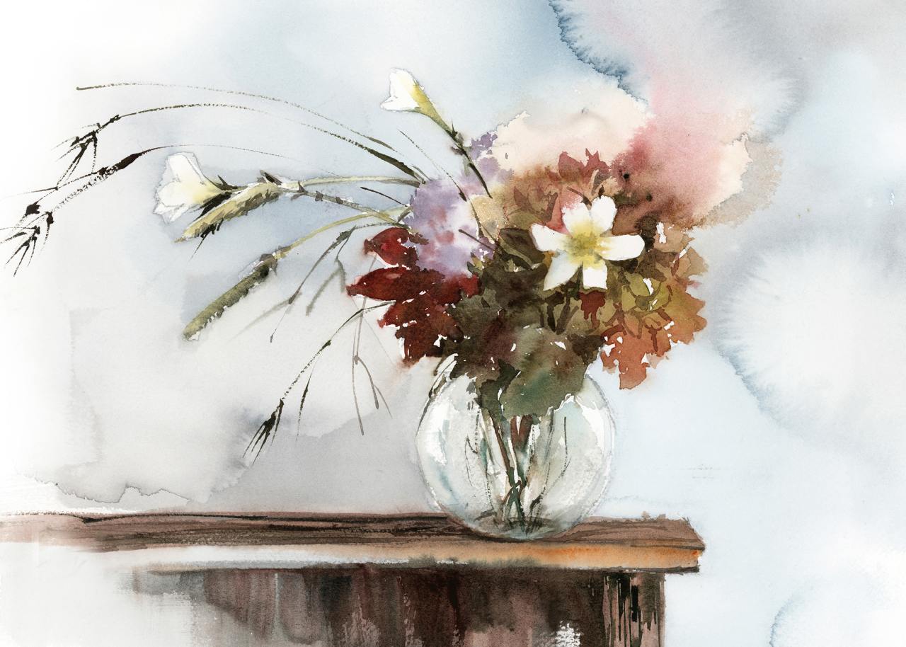Красочный букет в японской вазе. Акварель [lectoroom] [София Родионова]