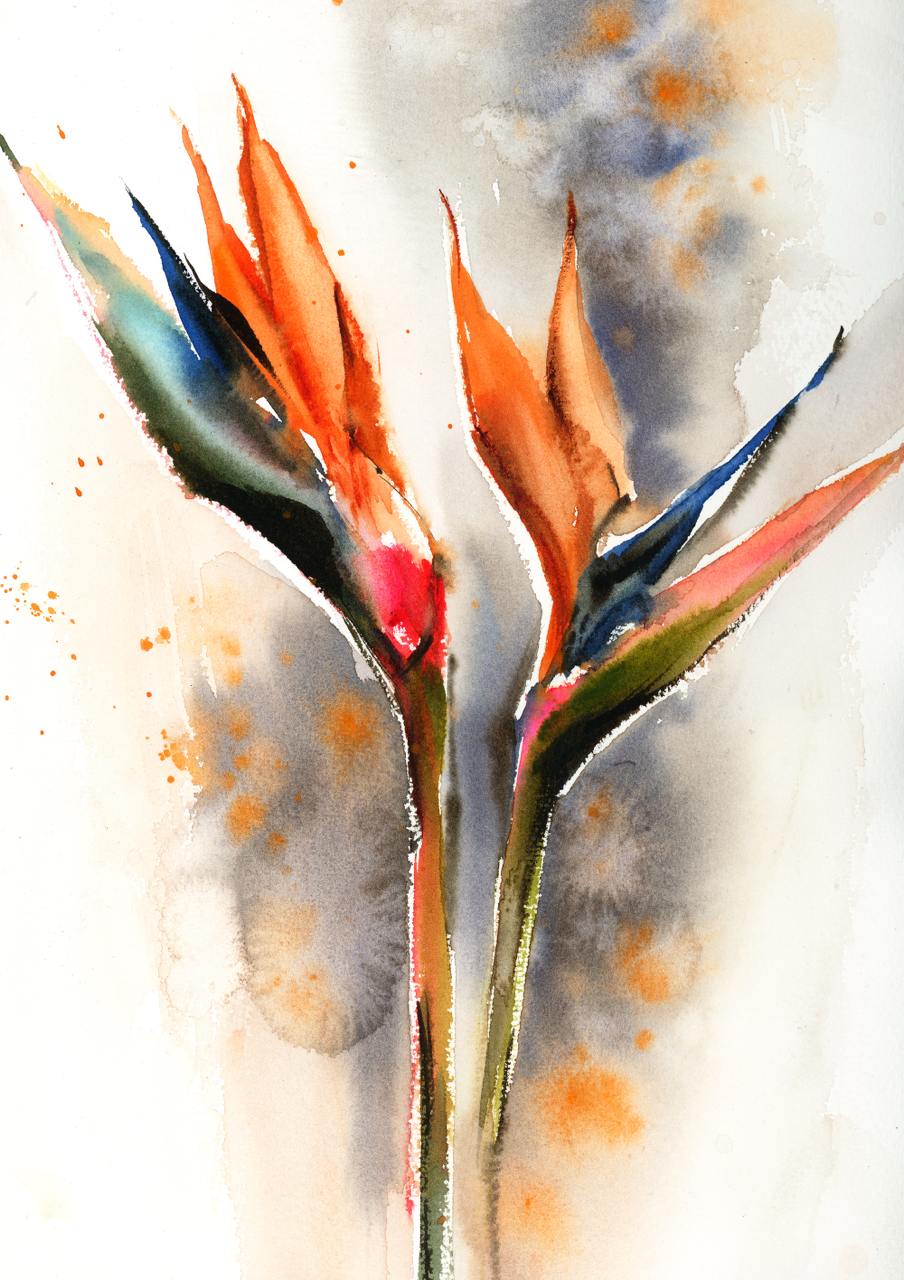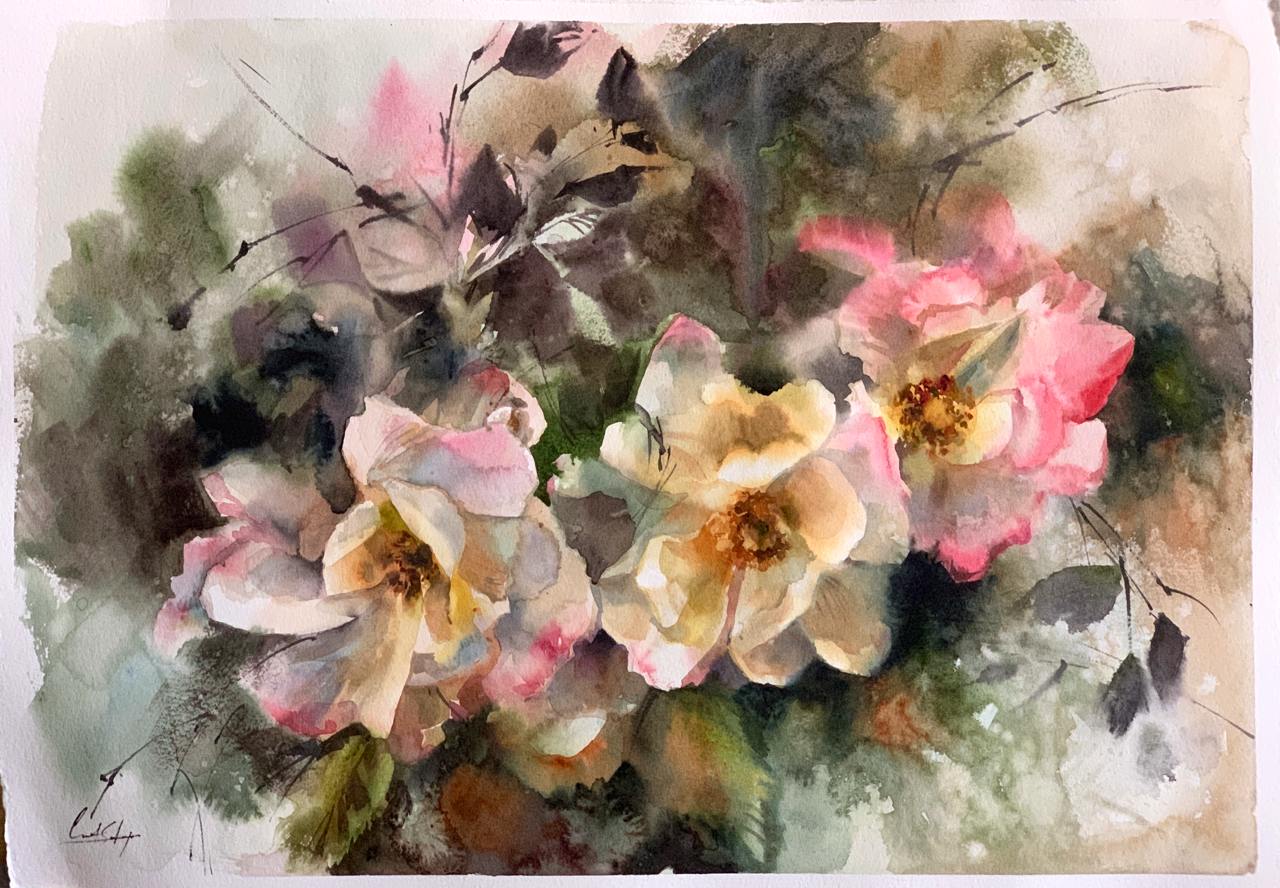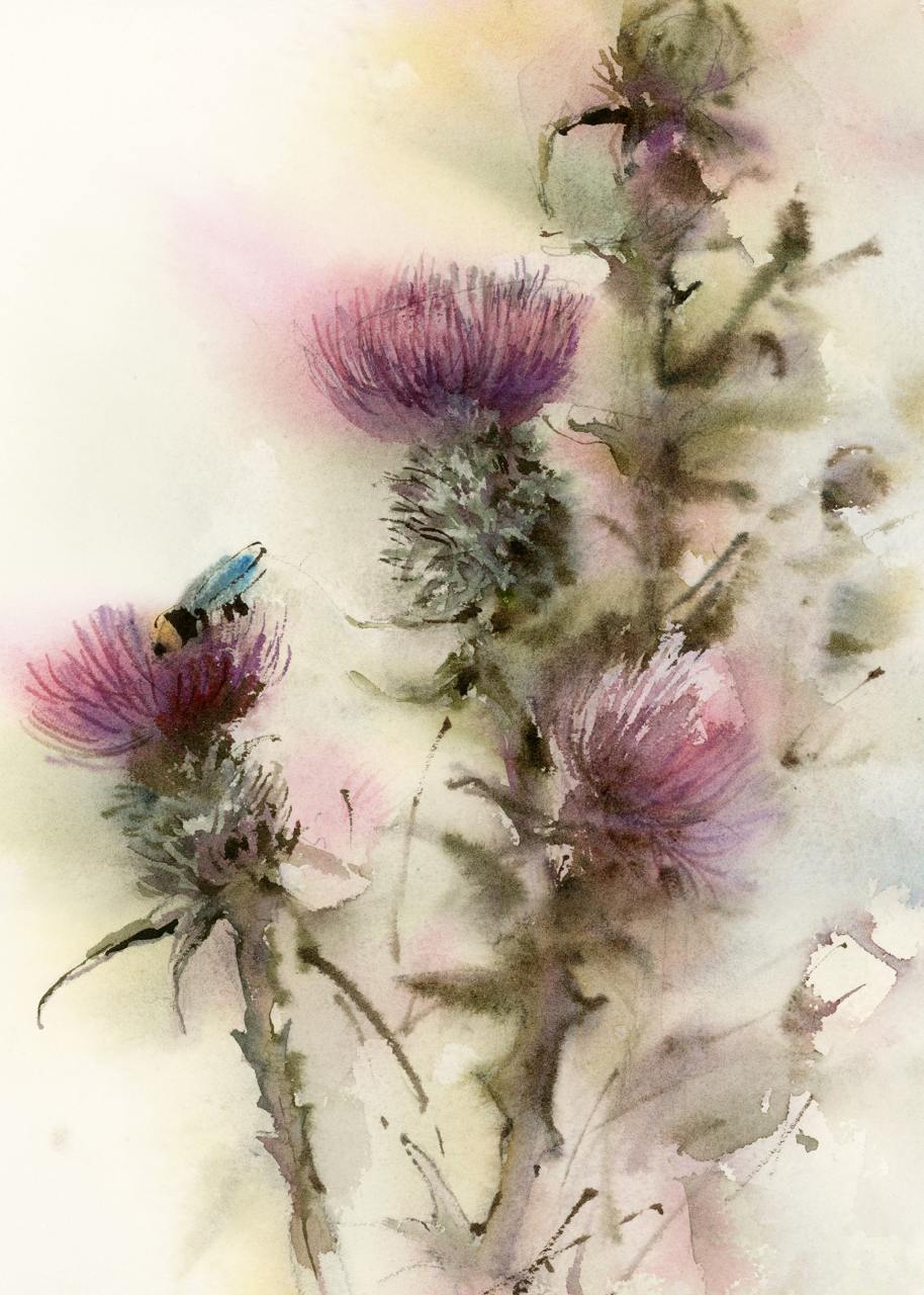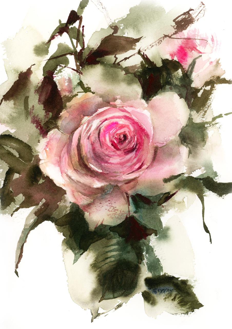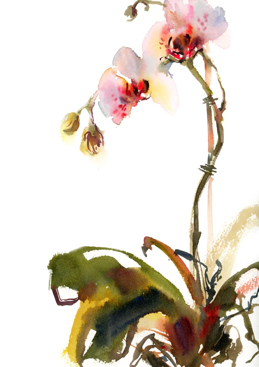 Красочный букет в японской вазе. Акварель [lectoroom] [София Родионова]