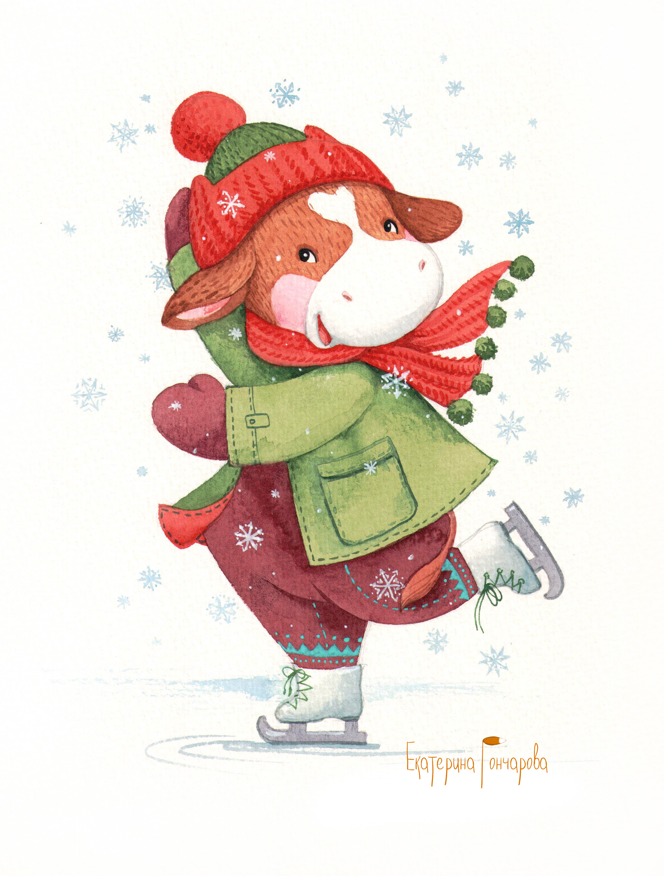 Курс по акварельным открыткам «Рыжий Новый год» [Екатерина Гончарова]