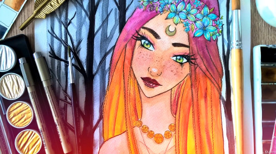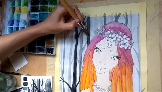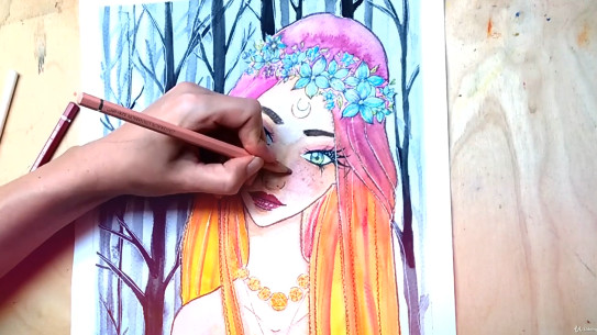 Курс по рисованию портрета лесной феи акварелью в стиле манга [Eliza, the Watercolour Witch]