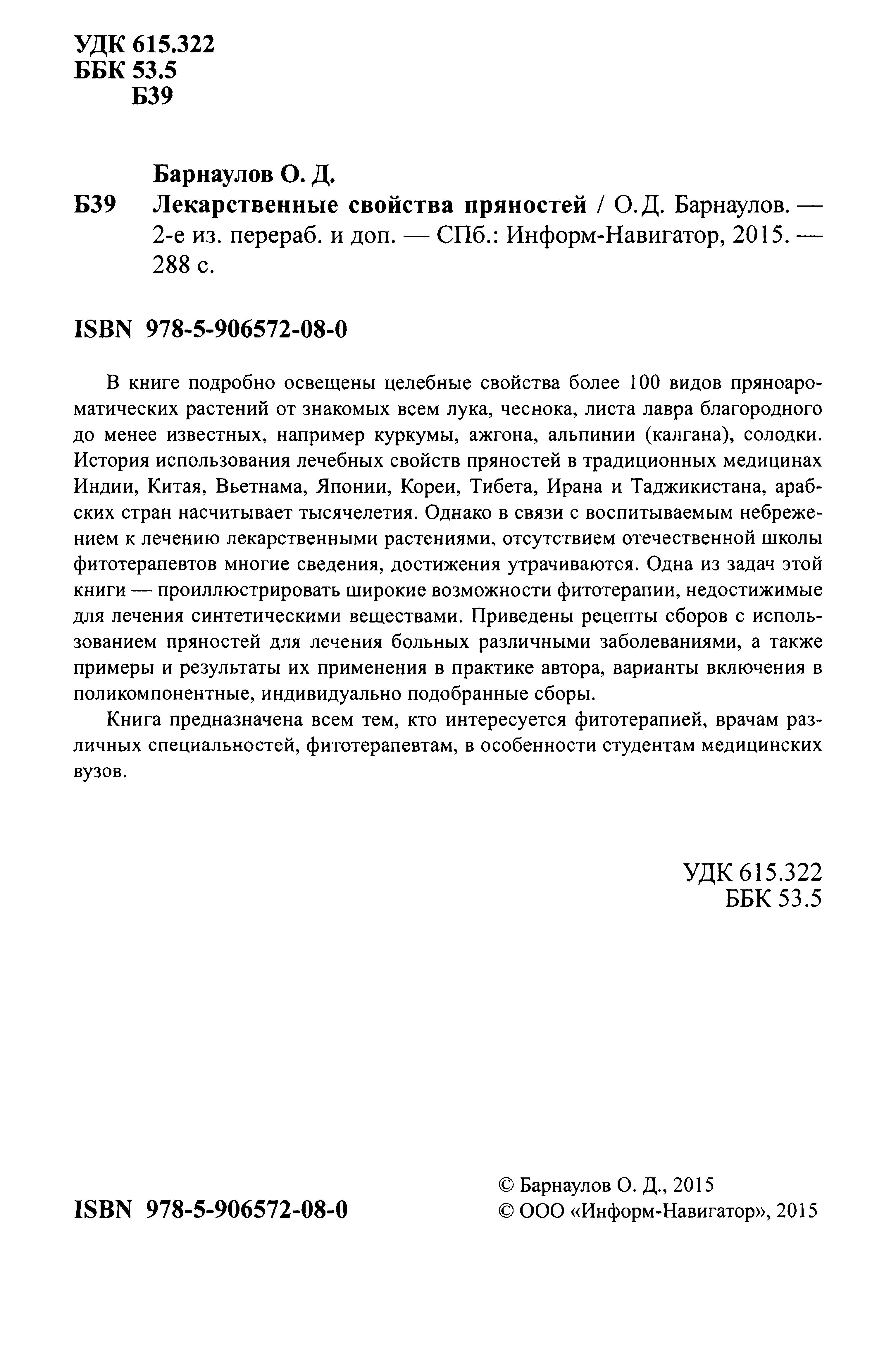 Лекарственные свойства пряностей. Барнаулов