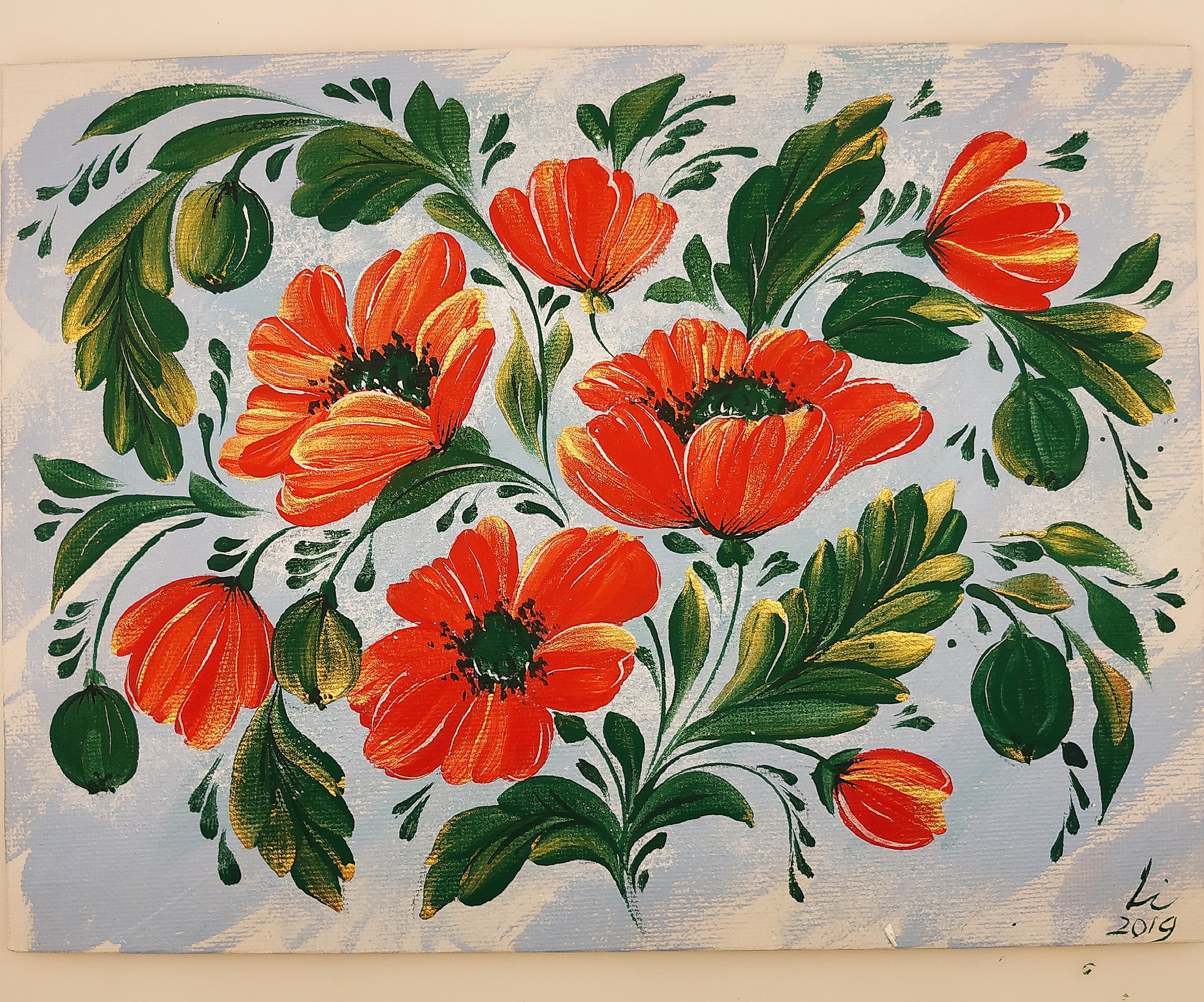Маки в технике One Stroke [Лилия Абдуллина]