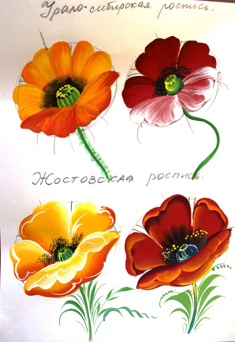 Маки в Урало-Сибирской и Жостовской росписи + Роспись горшочка акриловыми красками "Ландыш" [Зинаида Голубева]