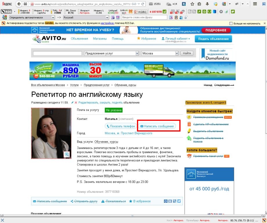 Массовая отправка писем на AVITO автоматизированный скрипт