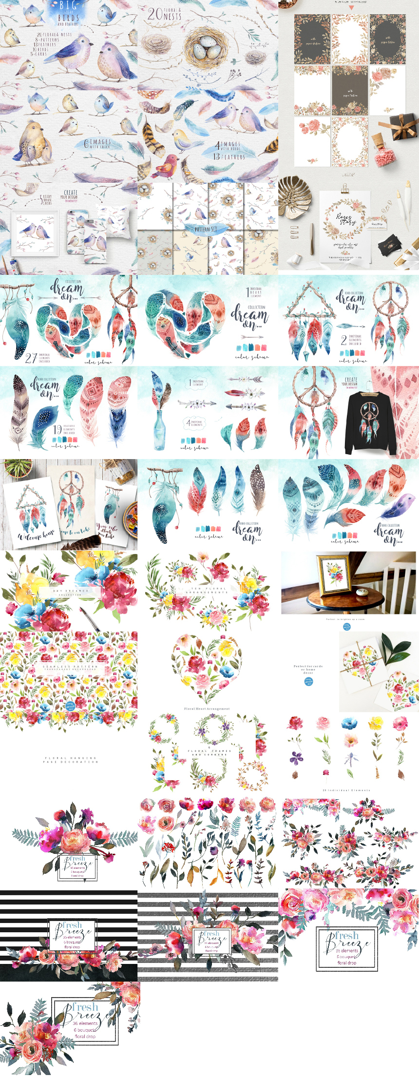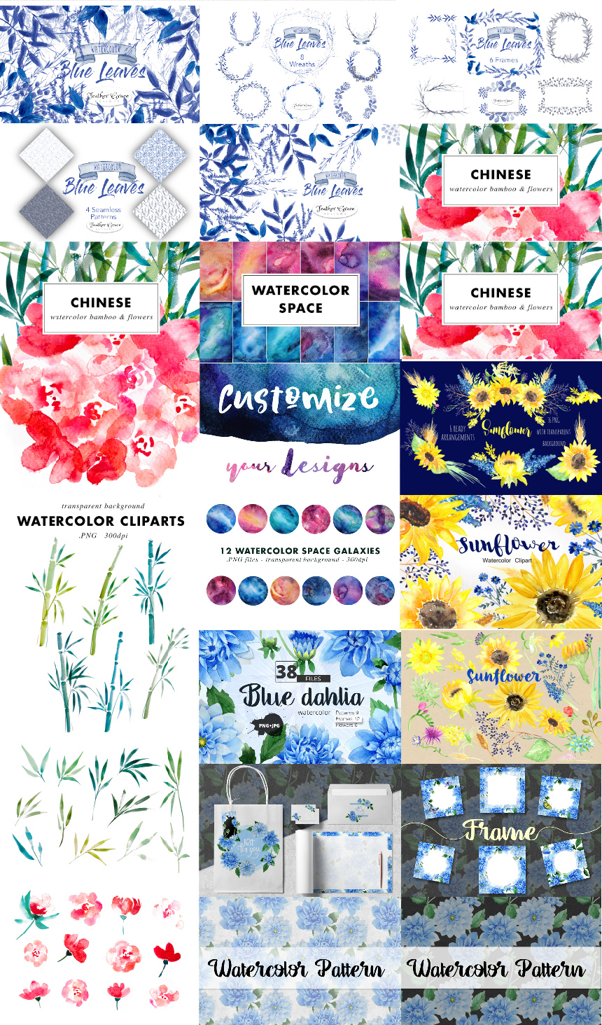 Мега пак акварели и цветочных наборов