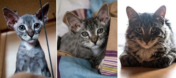 у котика такой взгляд виноватый)) как у соучастника) вообще бедные животинки - то их красят, то вот еще и стригут под сфинксов.