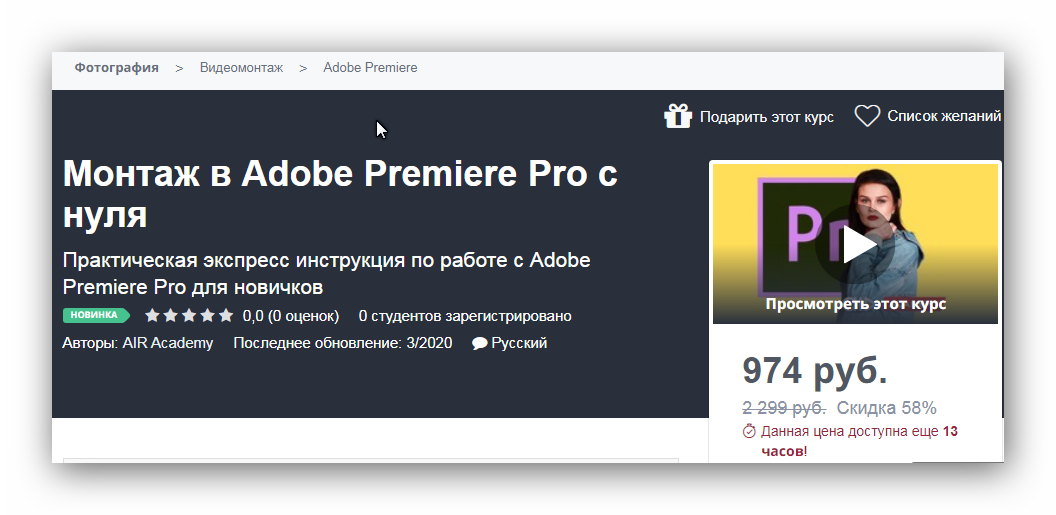 Монтаж в Adobe Premiere Pro с нуля [AIR Academy] [Udemy]