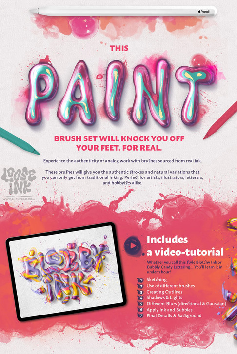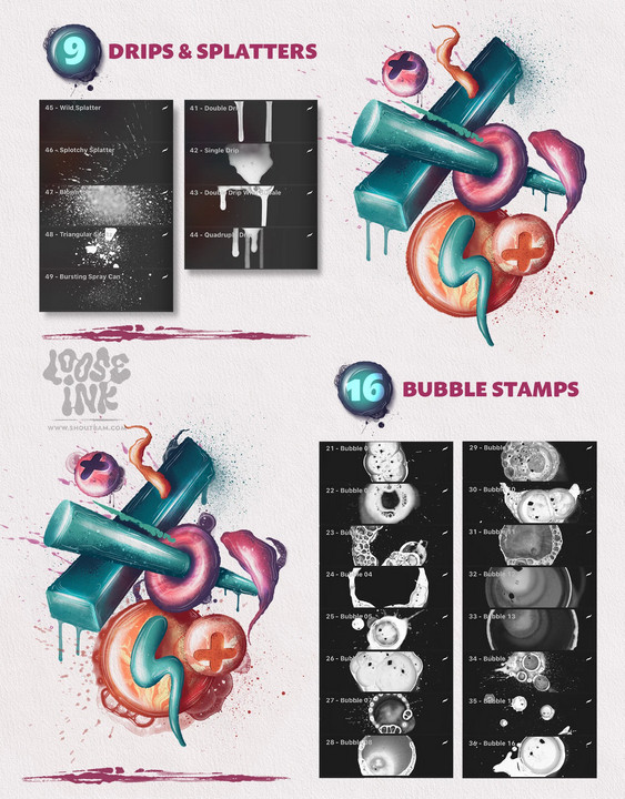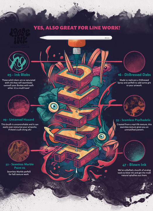 Набор кистей Loose Ink Procreate Brush Set [shoutbam]