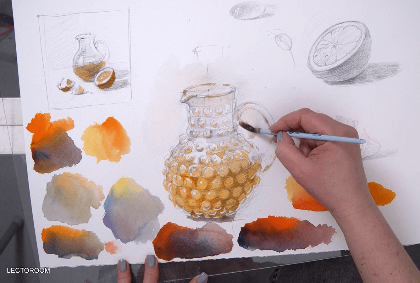 Натюрморт акварелью: апельсины и стеклянный кувшин [lectoroom] [Елена Базанова]