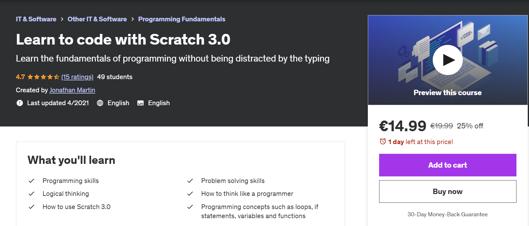 Научитесь программировать с помощью Scratch 3.0 (Learn to code with Scratch 3.0) - [Jonathan Martin] [Udemy]