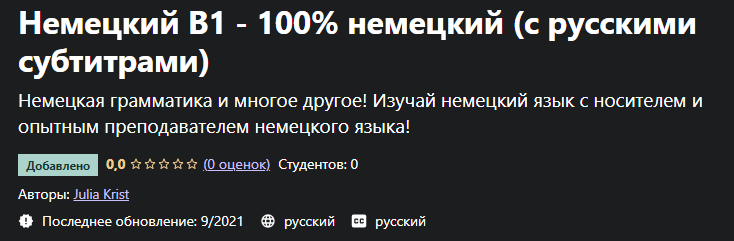 Немецкий B1 - 100% немецкий (с русскими субтитрами) [Udemy] [Julia Krist]