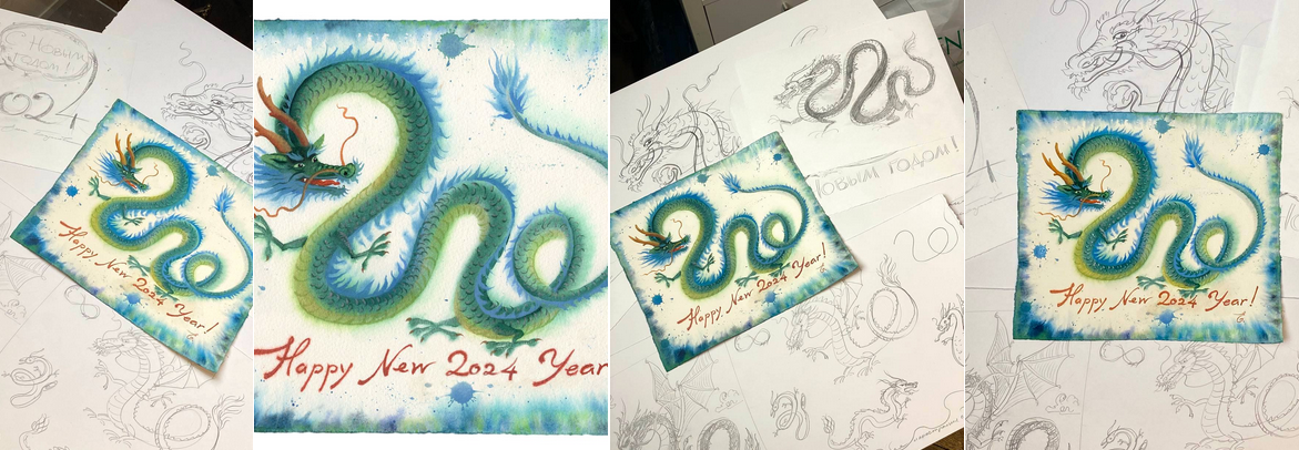 Новогодняя иллюстрация с драконом [Lectoroom] [Елена Базанова]