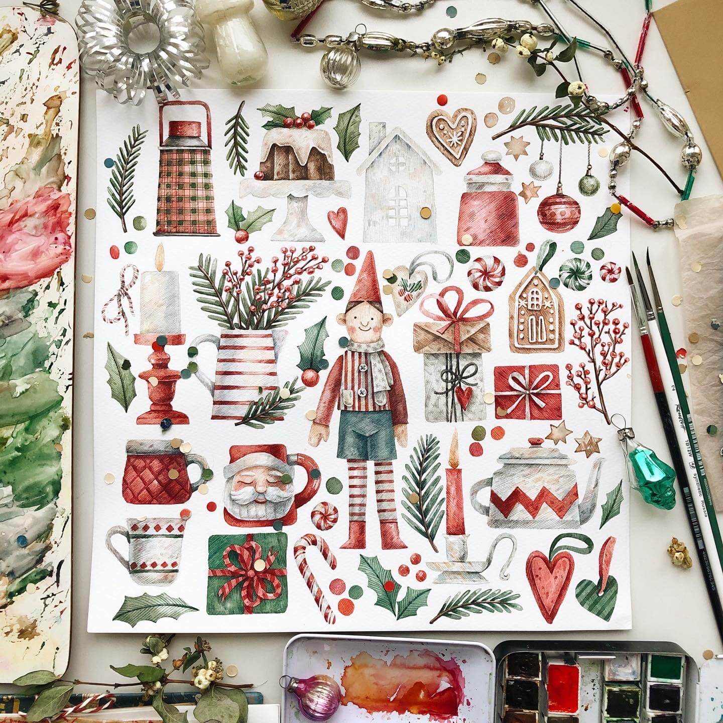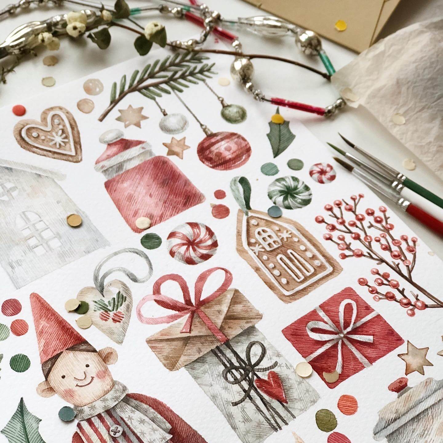 Новогодняя коллекция. Рисуем персонажа и предметы в винтажном стиле акварелью [lectoroom] [Тоня Ткач]