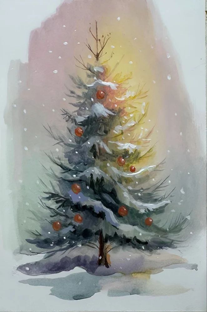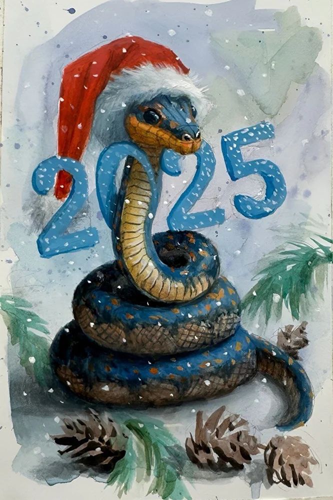 Новогодняя открытка акварелью (2025) [Виталий Антипин]