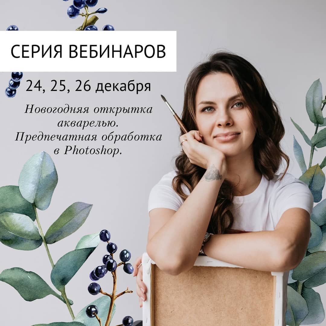 Новогодняя открытка акварелью: создание иллюстрации и предпечатная обработка [Татьяна Шиpбидова]