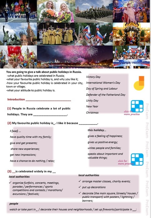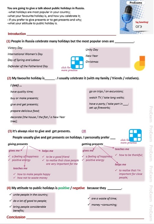 Обучающие материалы для подготовки к ОГЭ по английскому в части Говорения № 10: Holidays [Татьяна Лешкова]